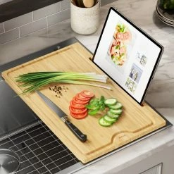 Made of natural Bamboo that is durable and looks great ; Holds most commonly used knives and accessories up to 8 in. deep ; Flexible in. plastic fiber in. hold different knife shape and size, in any position, no slot needed. in. Plastic Fiber in. is removable and dishwasher safe. Knife not included, opening 5.5 in. x 5.5 in. x height 10 in.