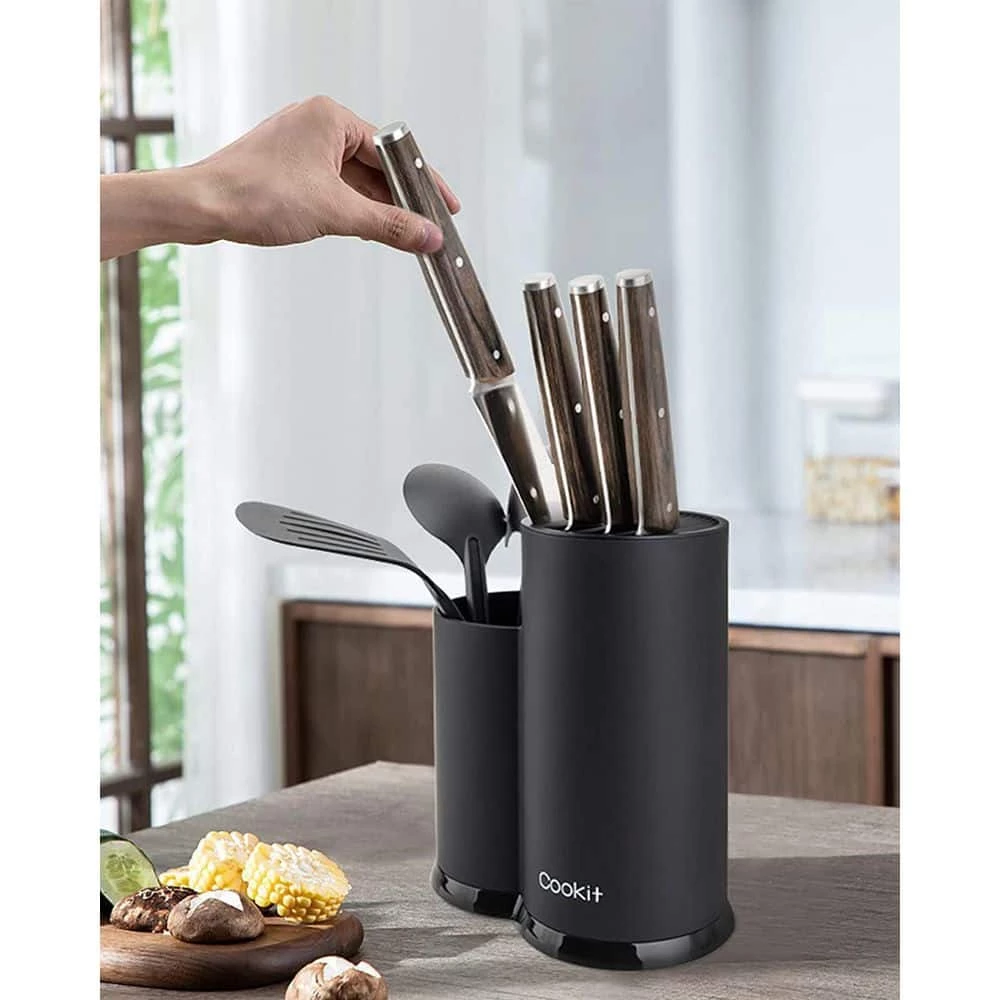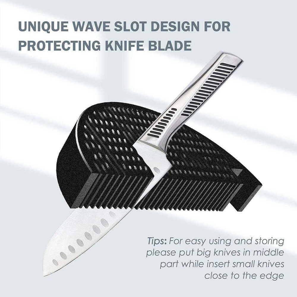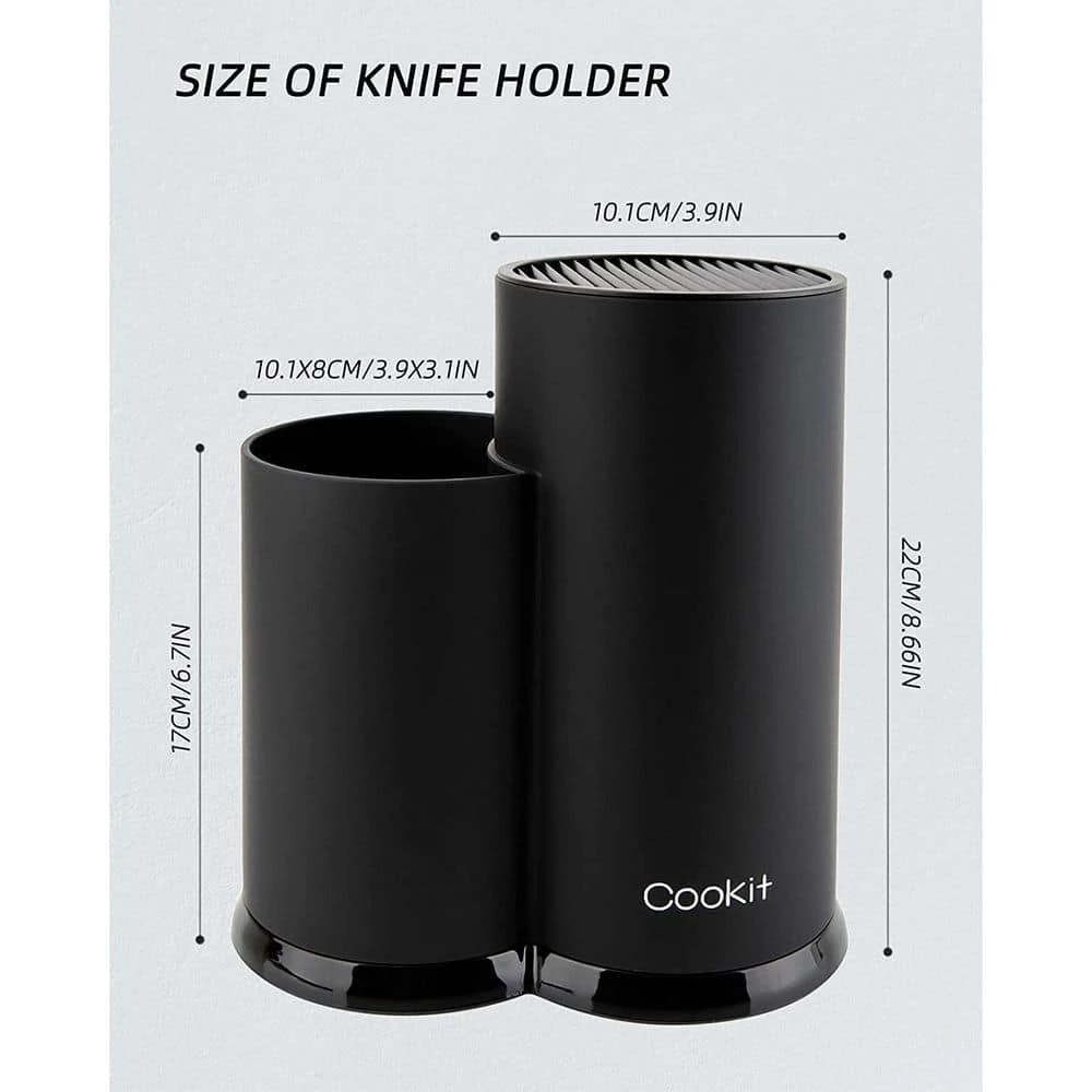 - Universal knife block: knife block made of premium PP material, it can hold all up to 14-knives with 8 in. blades plus a pair of kitchen scissors or sharpener, save the space for your butcher block countertop