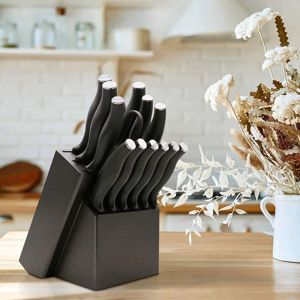 Our 14-Piece kitchen knife set is a set of knives to meet all your kitchen cutting needs. Made of premium German high carbon forged stainless steel (3Cr13), it provide the high hardness and long-lasting edge retention, also with ability of resists rust, stain and corrosion. It can be used for your daily kitchen,tasks of chopping, slicing, dicing and mincing of all kinds of meat, fish, vegetables and fruits etc. Let’s get this with you.