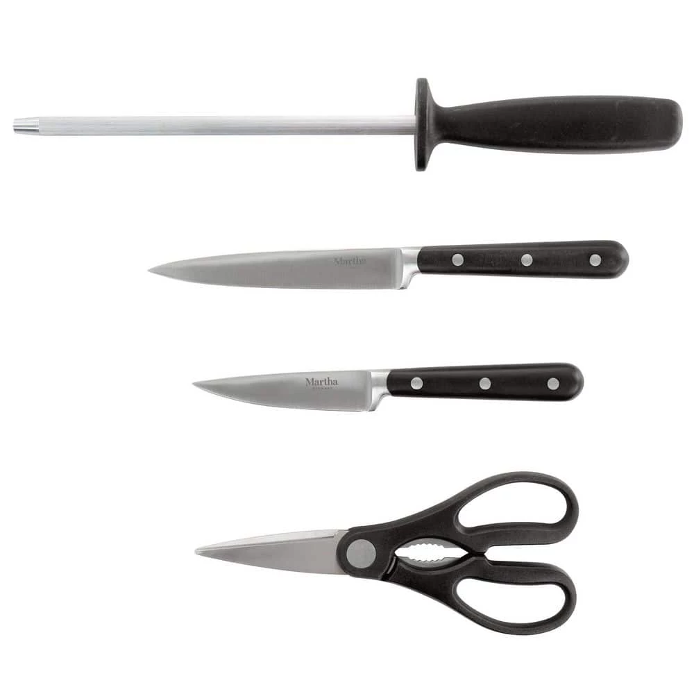 A chef’s truest companions in the kitchen are their knives, and ensuring that you’re using not only the right knife for the task at hand, but the best knife. The MARTHA STEWART 14-Piece Stainless Steel Cutlery Set comes with a large variety of quality knives, covering an expansive range of food prep needs. Also included in this set is an Acacia wood block to store the knives and sharpening steel, so you can preserve the peak condition of the knives. Each of the blades is forged from high-carbon, taper-ground stainless steel, then fitted with a triple-riveted handle for balance and control. There’s no better way to sharpen up your knife skills than to start with an excellent set such as this.