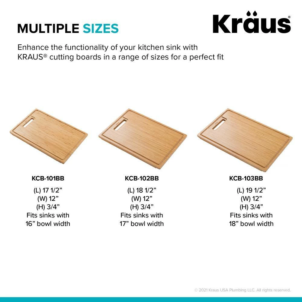 KRAUS over-the-sink cutting boards are the perfect way to prepare ingredients without losing valuable space on the kitchen counter, maximizing your workspace by turning your sink into an extension of the countertop. The cutting board is designed with unique side notches and non-skid silicone feet that allow it to sit securely over the sink without sliding during use. Chop, slice, dice, tenderize, or even roll out dough, and make full use of the area over your sink! Keep your countertops clutter-free while you work, and when you are finished, brush debris straight into the drain or garbage disposal. With solid bamboo construction, this durable cutting board provides an easy-to-clean naturally non-porous surface that is highly resistant to odors and stains. Built-in grooves catch liquids and help prevent spills to keep your workspace cleaner. Explore the full suite of KRAUS Workstation accessories and take your kitchen to a whole new level!