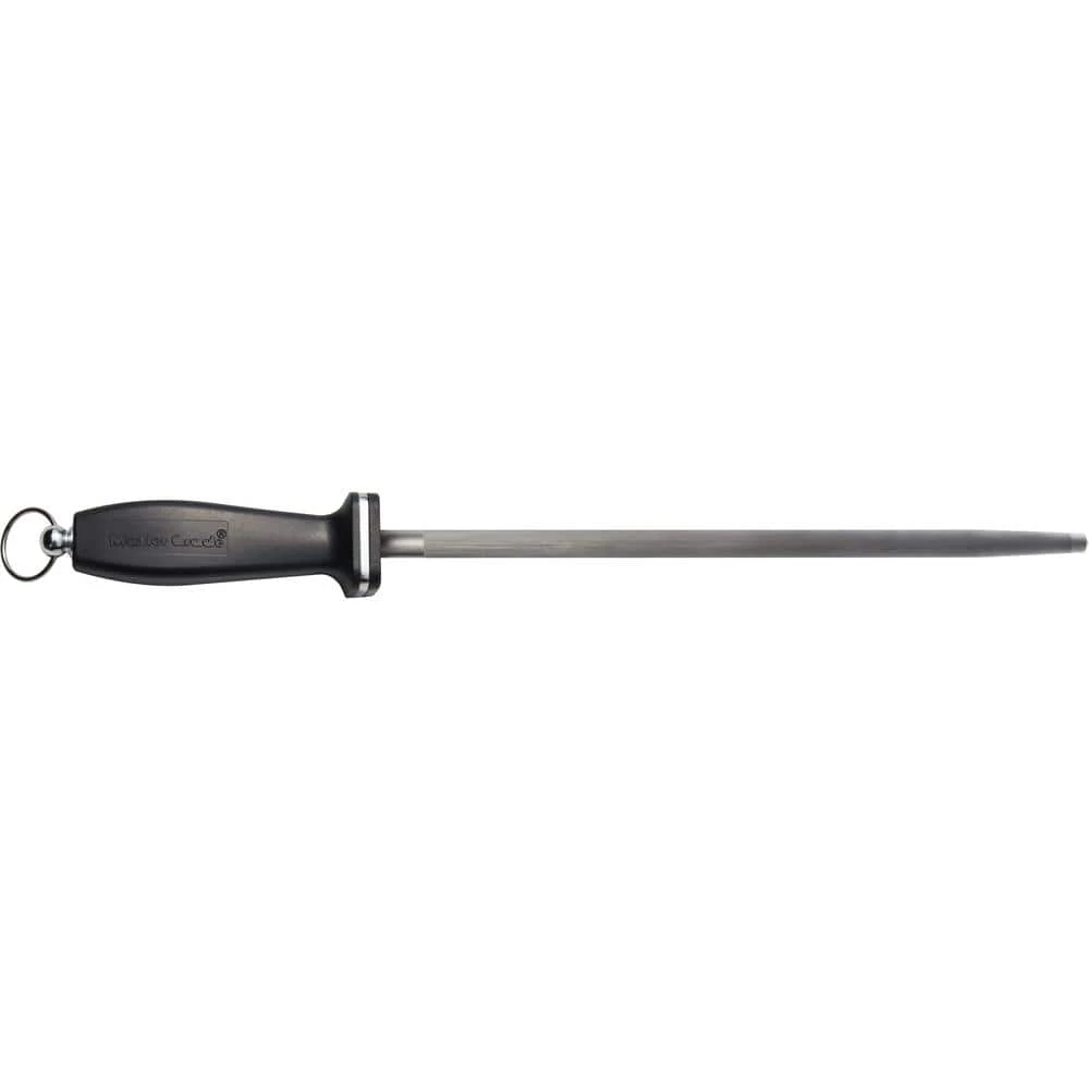 Hard-Chrome finished, per circle 400 lines Steel rod, HRC65 hardness, built by the expert in the industry. L12 in. Dia 0.5 in. handle length measures 5 in. with plastic handle with hanging loop. The best quality and workmanship. To clean it, washed it and wipe dry completely or use non-woven cloth soaked in cooking oil to wipe the rod and dry it. Manufactured by Master Grade, the expert in the sharpening Made in Taiwan.
