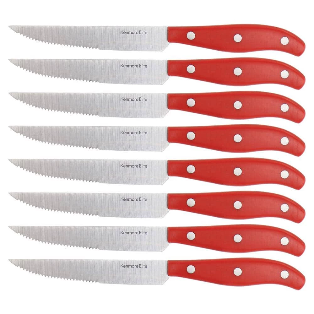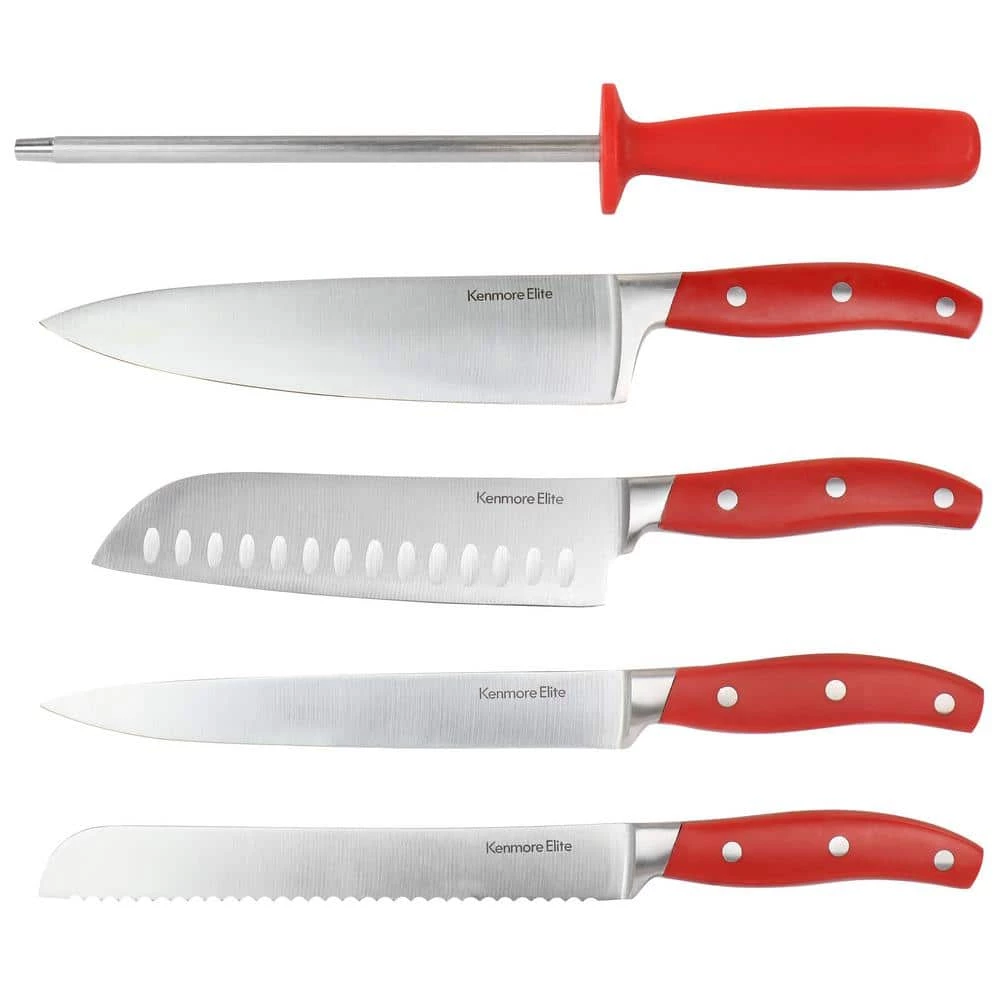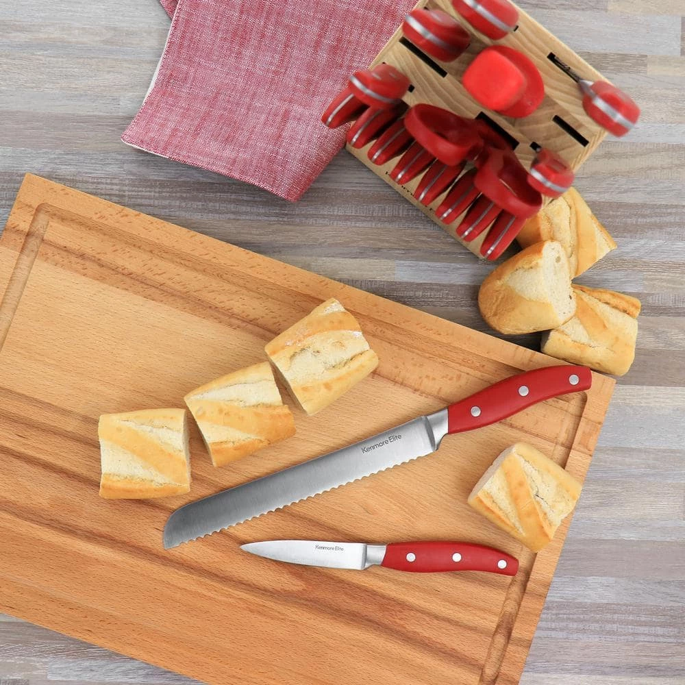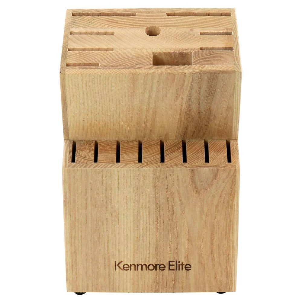 This 18-piece cutlery and wood block set by Kenmore Elite comes with all the knives you need to cook the perfect dish. Knives are constructed with high carbon stainless steel blades for precise cutting, and ergonomic handles for sturdy grip. Durable edge makes cutting all types of food easy; with the variety of knives in this set you’ll be able to prep and cut dishes of any kind. The heavy duty forged construction provides balance and durability for long lasting use. Set includes an Ashwood storage block.