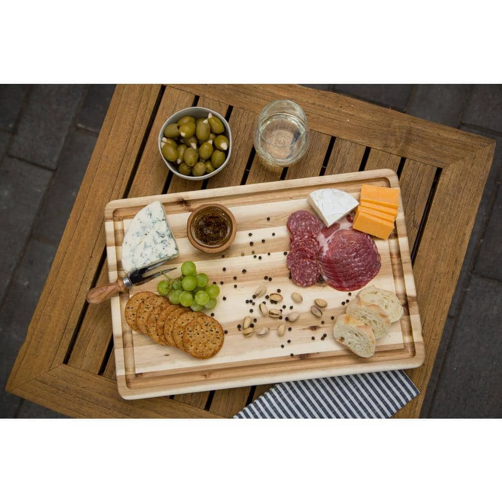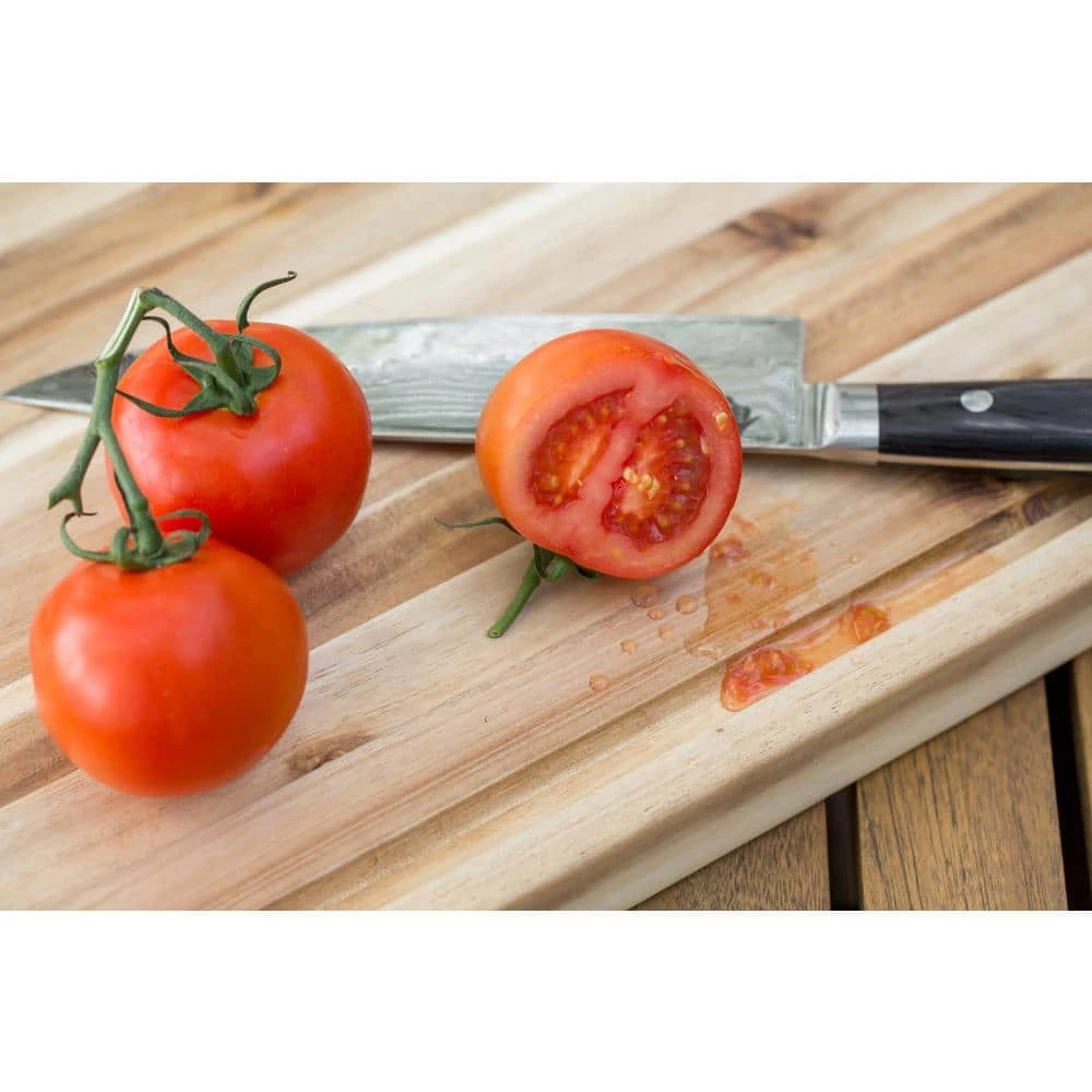 The rich beauty and design of the CenterPointe Acacia reversible chopping block is the perfect tool your kitchen demands. This heavy duty 18 in. long X 12 in. wide x 1.5 in. thick chopping block allows you to cut, chop, prep, and serve all on the same board. Clean-up is made simple with the built-in drip groove preventing liquids from dripping off the edge. Acacia wood acts a nurse crop for native forest regeneration by enriching and fertilizing the soil.