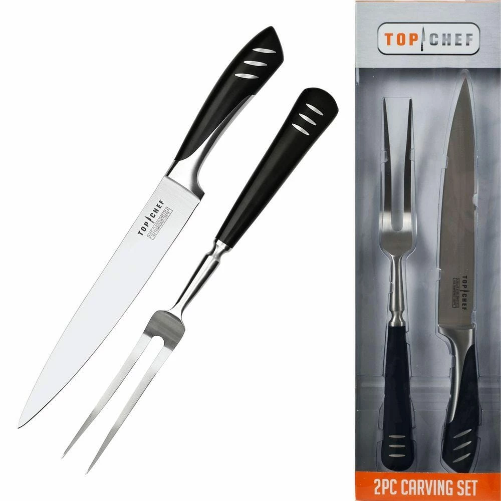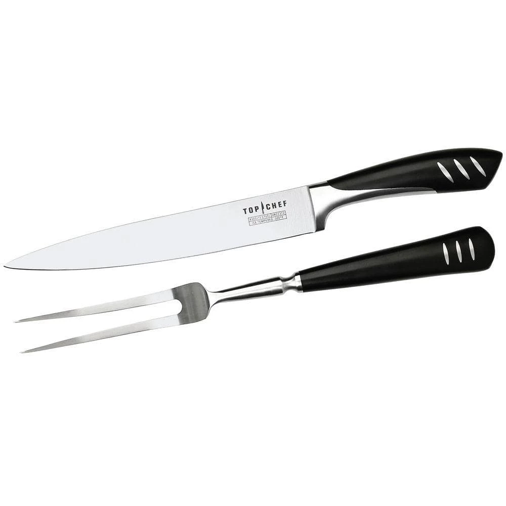 This officially licensed carving set will have you grilling like the pros. Like those used on Bravo’s top-rated Top Chef Program, this carving set features ice-tempered stainless steel. Full Steel Handle with Seamless Bonded and Polished Bolsters and Non-Slip Surface.