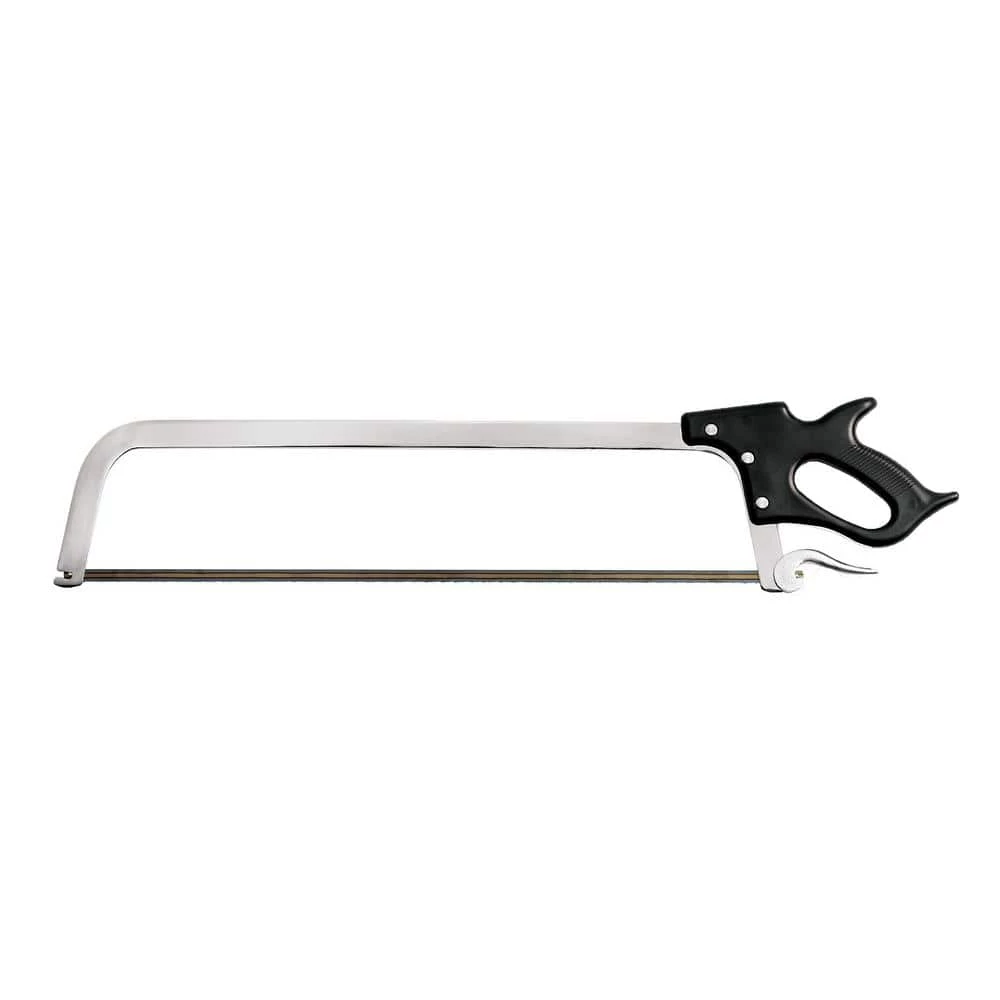 Professional quality meat saws have a heavy, nickel-plated frame and a convenient cam-lock blade tightening lever that makes blade changing easy. Blades are made of carbon steel that are treated to resist rust. With about proper technique, speed and pressure a person can saw all day long without tiring or breathing hard.