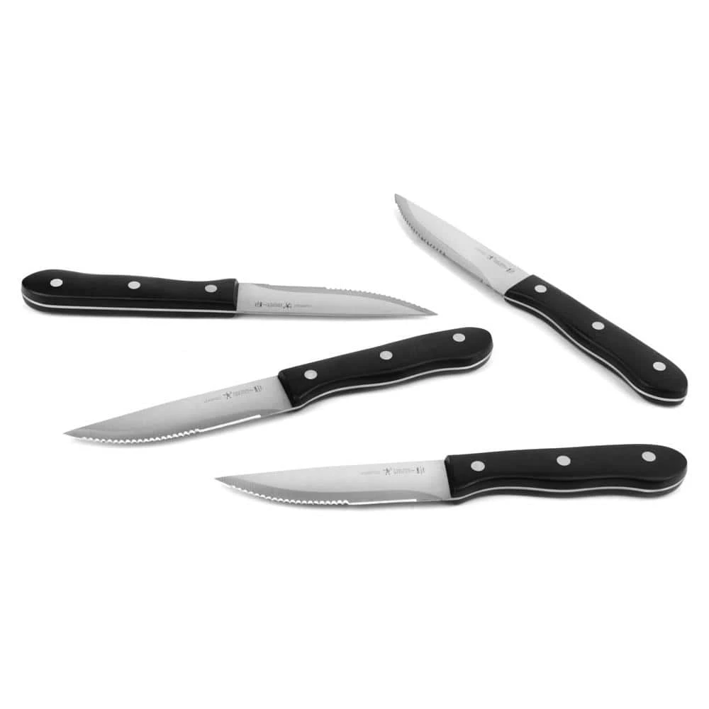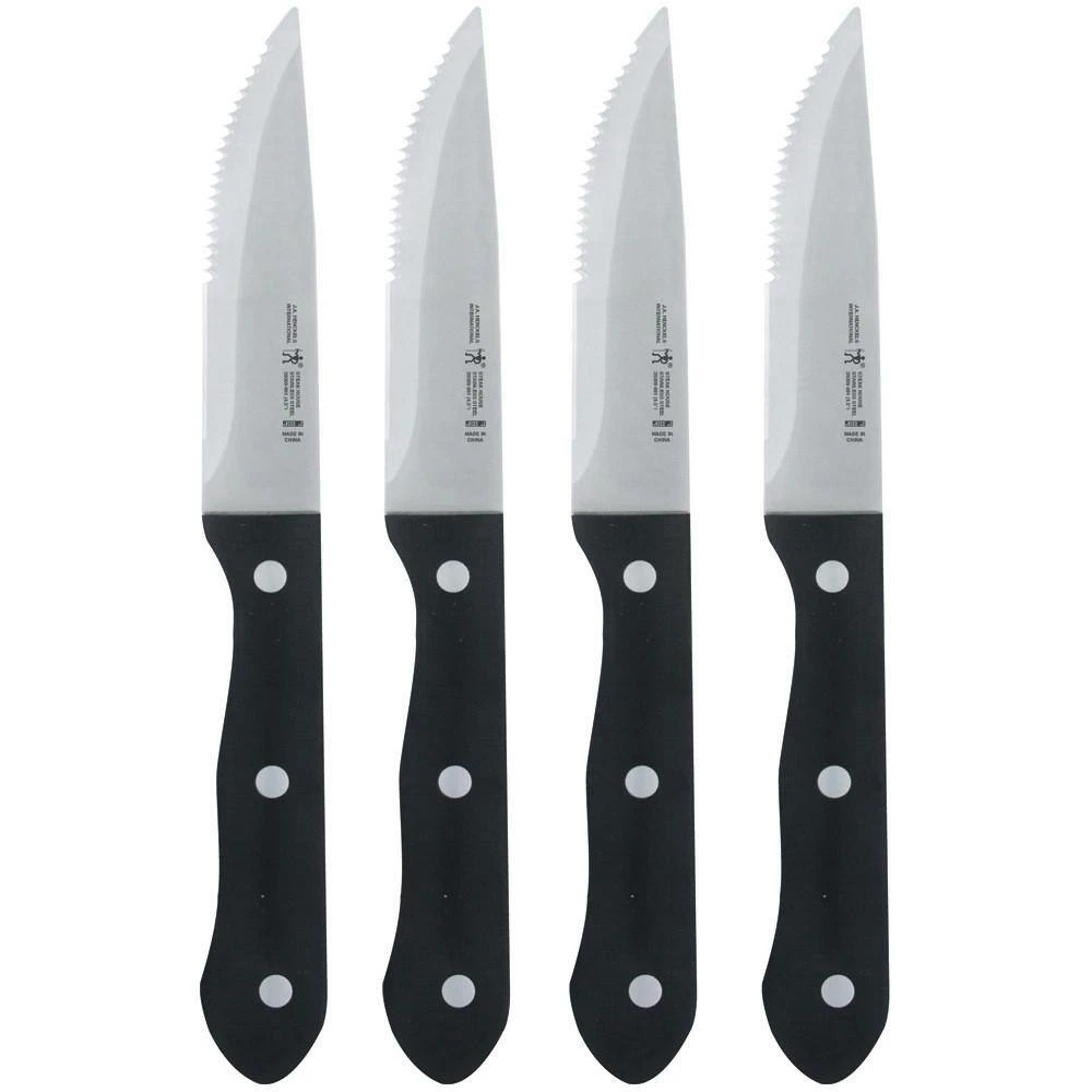 Never struggle cutting a steak again with this Henckels Four-Piece Jumbo Steak Knife Set. These knives are crafted of fine-quality steel for perfect slicing. They’re stylish to match your other utensils and they never need sharpening.