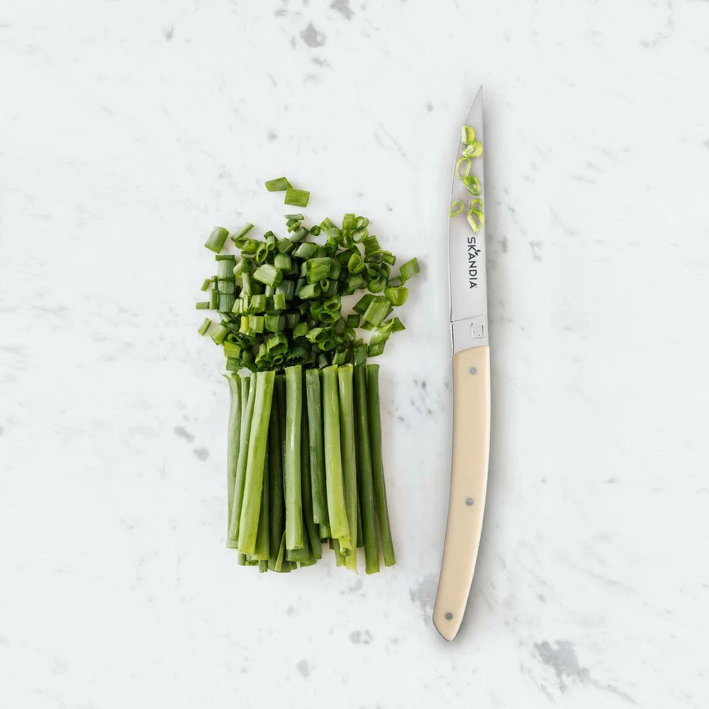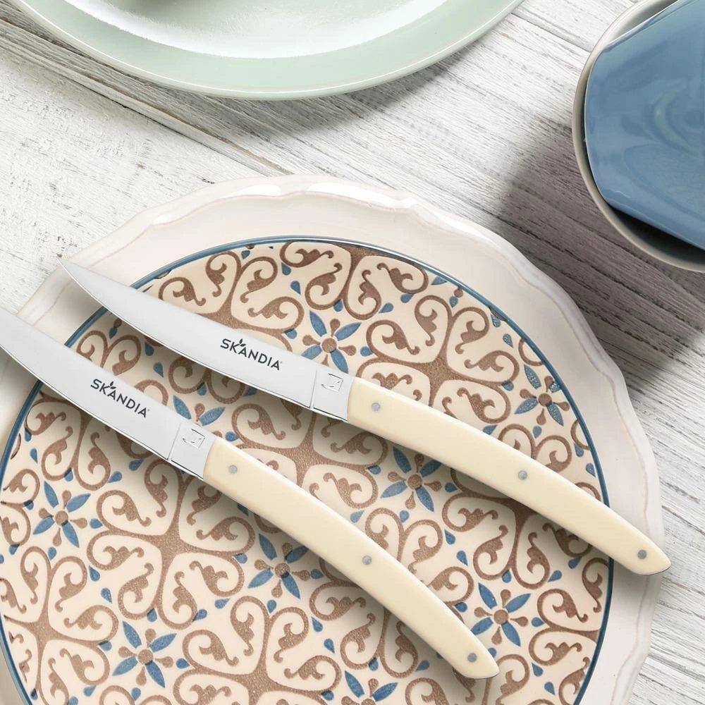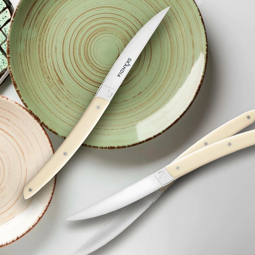 Keep it Neutral- Muted grays, creamy whites and taupe are clean, timeless colors that never seem to go out of style. Skandia’s Vivid Cream 4 Piece Steak Set is making a sharp impression and is right on trend. Designed not just for comfort, Vivid Cream’s handsome organic shape is nature inspired and original and is sure to be a topic for conversation at the dinner table. As an added bonus, our set comes in a handsome wood box for safekeeping.
