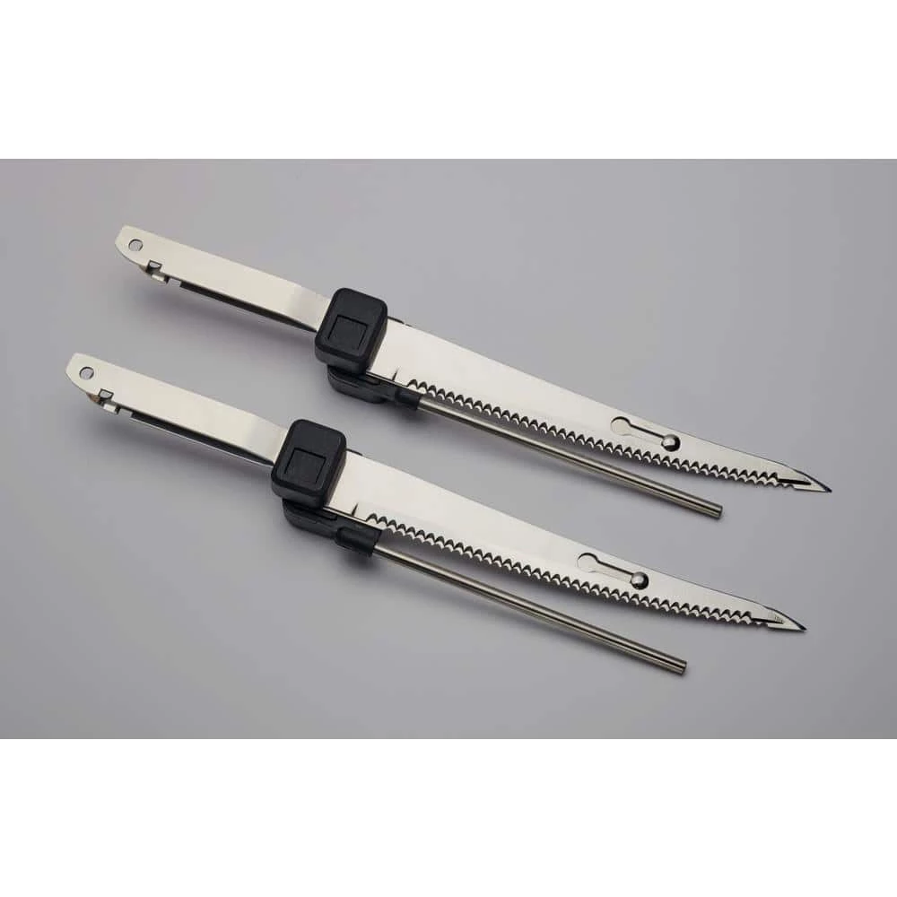 - Kit contains electric knife, 2-sets of ss blades, 2-guide bars (silver skin, jerky) pliers with hooks, cut resistant gloves and carrying case