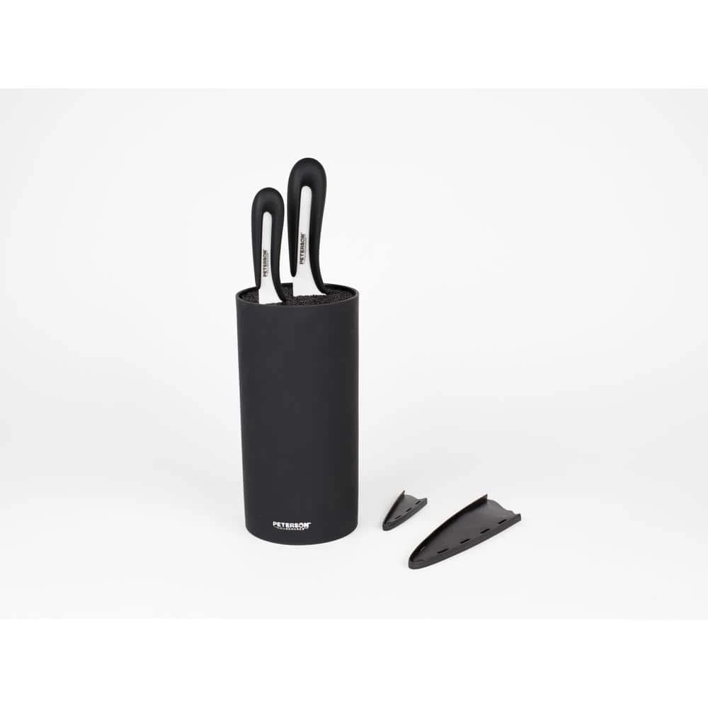 Universal Knife Block Holder with Premium Nylon Insert – Cooking Utensils Holder. Made from completely Food-Grade Polypropylene for strength and dimensional stability with a proprietary coating that gives an elegant appearance and a comfortable grip. The matte black exterior of the kitchen knife holder will blend well with your kitchen whether it’s chic and modern, warm and rustic or timeless and classic. BPA-free, reusable and environmentally.