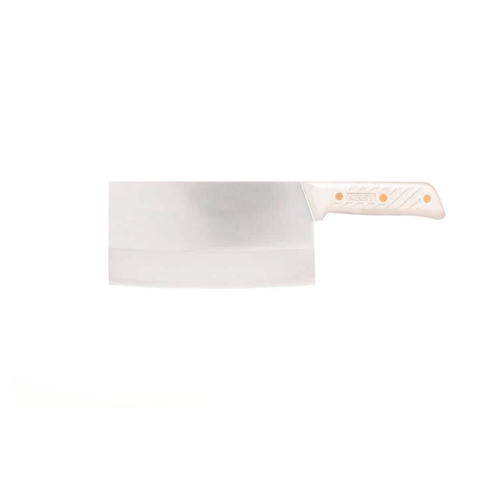 Chinese Large Chef 3-layer Knife by Master Grade. Chinese Style 7.3 in. Chef Knife, Steel Handle size: 4.3 in. It is handmade, 7 hours long to build this-Piece. Only 2 manufacturers left in the World that still produce knife with 3-layer technology. Made in Taiwan.