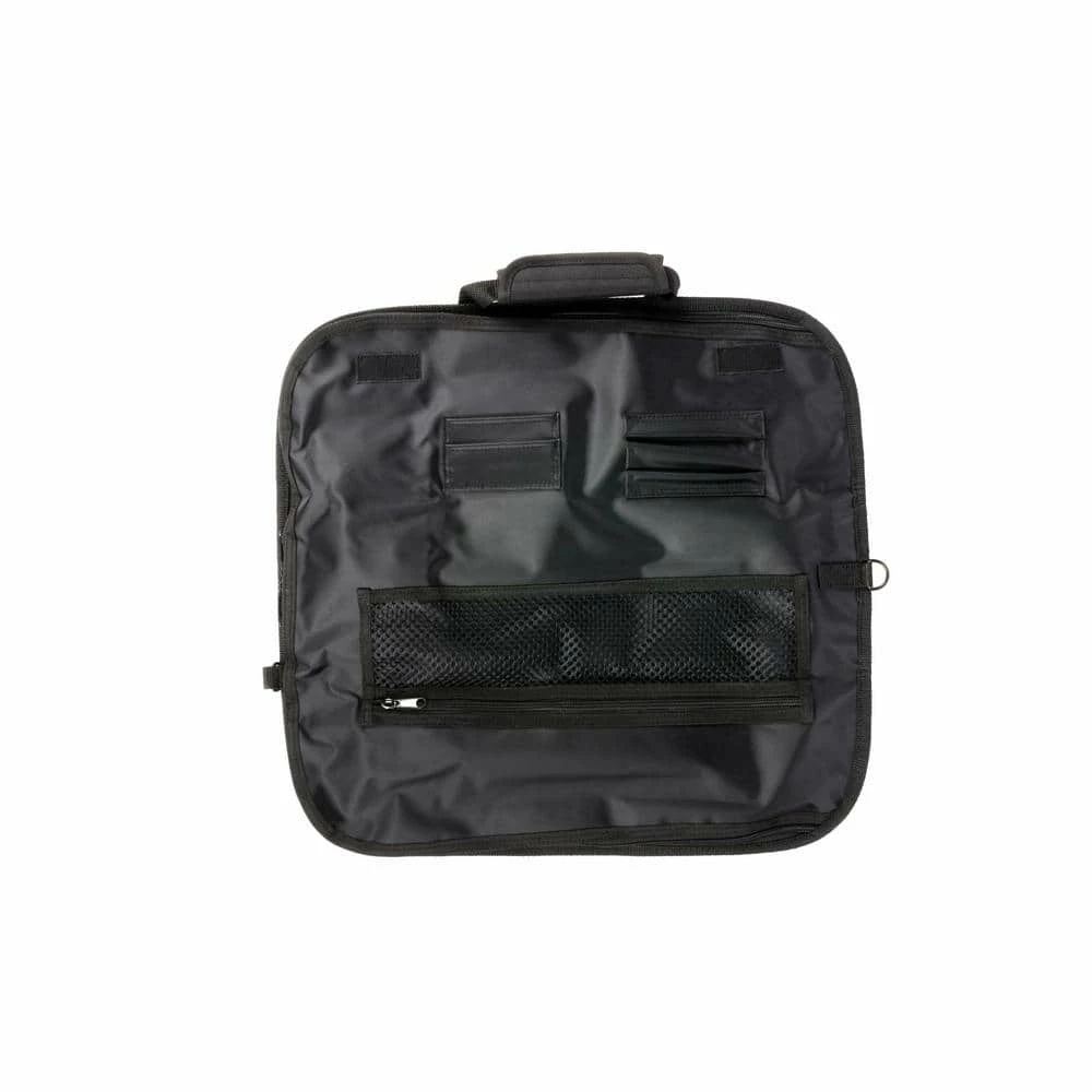Master Grade Knife Nylon Bag. Good Quality Knife Bag built with a strong and durable nylon. It has 8-knife slots holder with protection layer. Meshed Pocket, cards , pens holder and a identity card holder Strap sold separately. Size 20 in. L X 6.5 in. W X 0.5 in. D.