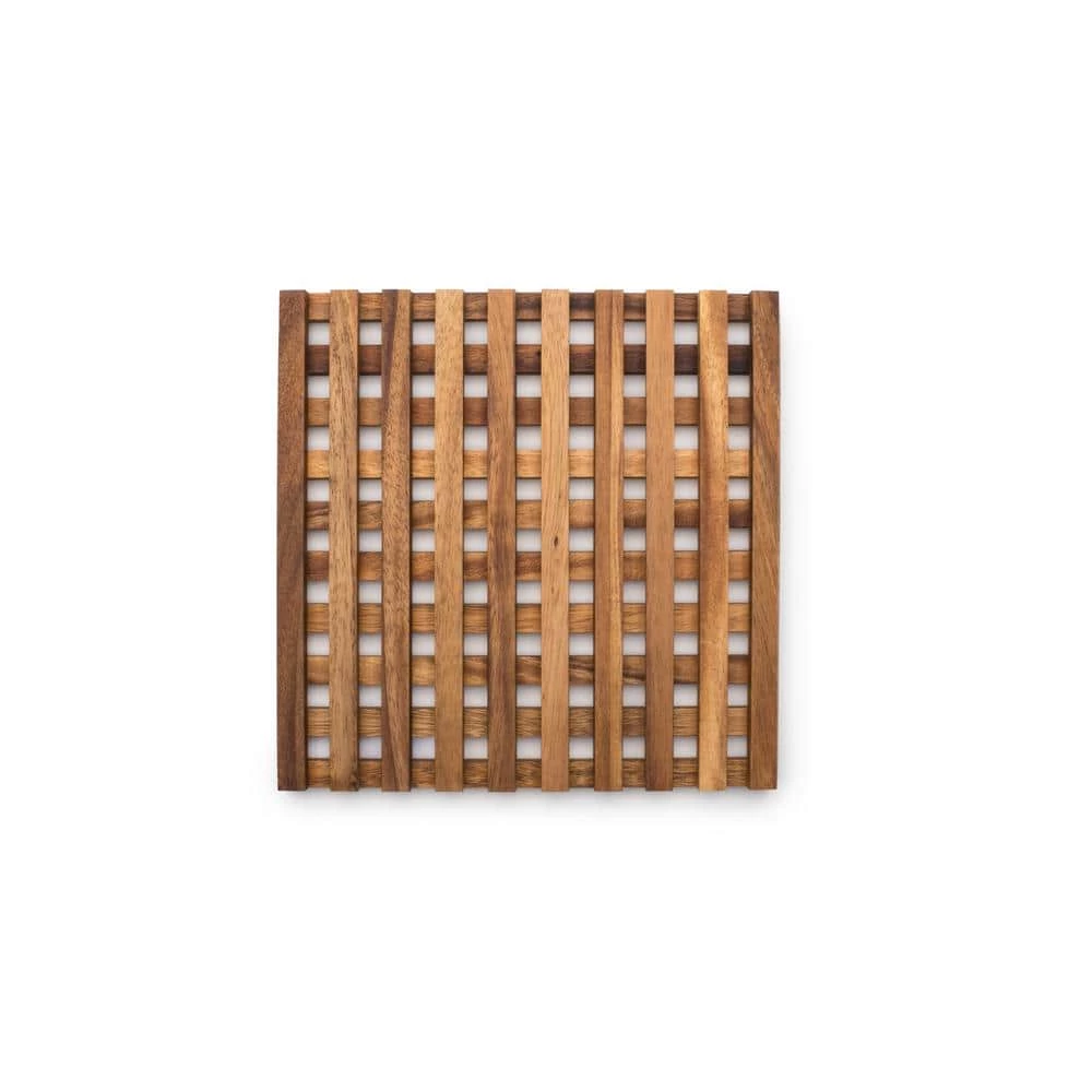 Protect surfacesin style. This Trivet is made of gorgeous acacia wood, making it functional and beautiful due to its rich, shimmering colors. Use this handy accessory to protect your tabletops and countertops from heat and water damage. It features an intricate design that will add style to any home. Avoid heat marks and stains when serving at your next dinner gathering with this trivet. Decorative functionality at its finest. This product is made from Acacia Wood from Thailand, a non-endangered species that is not harvested from rainforests. In fact, we plant a tree for every tree we use. **Use and Care** After use, wash this product in warm soapy water and wipe excess water off with a dry towel. Never soak or leave water on the wood during drying as it may result in warping over time. Wood products should never be washed in the dishwasher. Rejuvenate and protect the your board rubbing it down with Ironwood Butcher Block Oil after each use. When the board is dry, apply the oil liberally and allow it to soak in thoroughly before use. Regular application of our Butcher Block Oil will prevent cracking and preserve the rich natural colors of the wood. From time to time, the surface may become “bumpy”. This is completely natural as we leave all of our wood in its natural state with no varnishes or lacquers. You can simply use a high grit sandpaper to smooth it out and oil it again to bring it back to new.