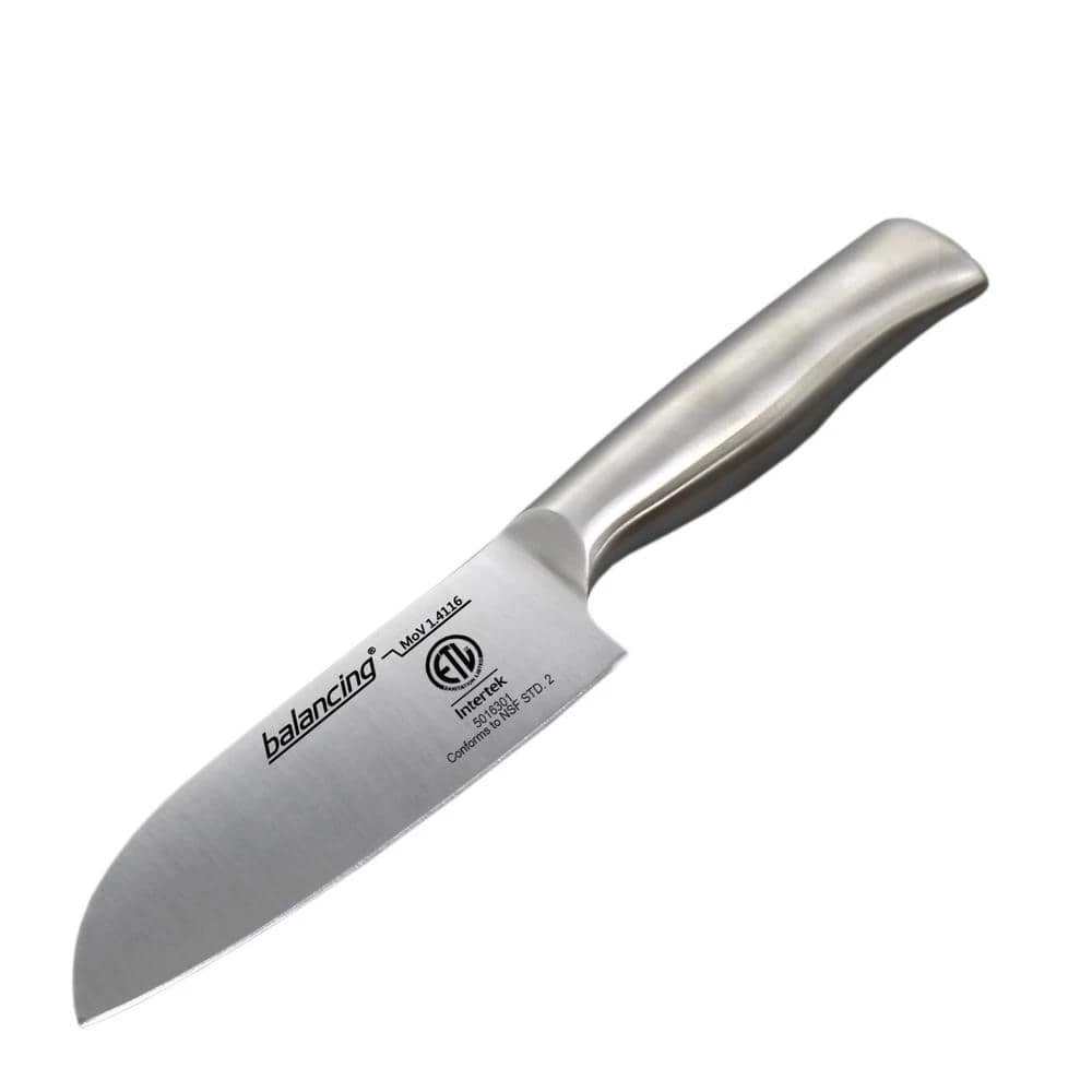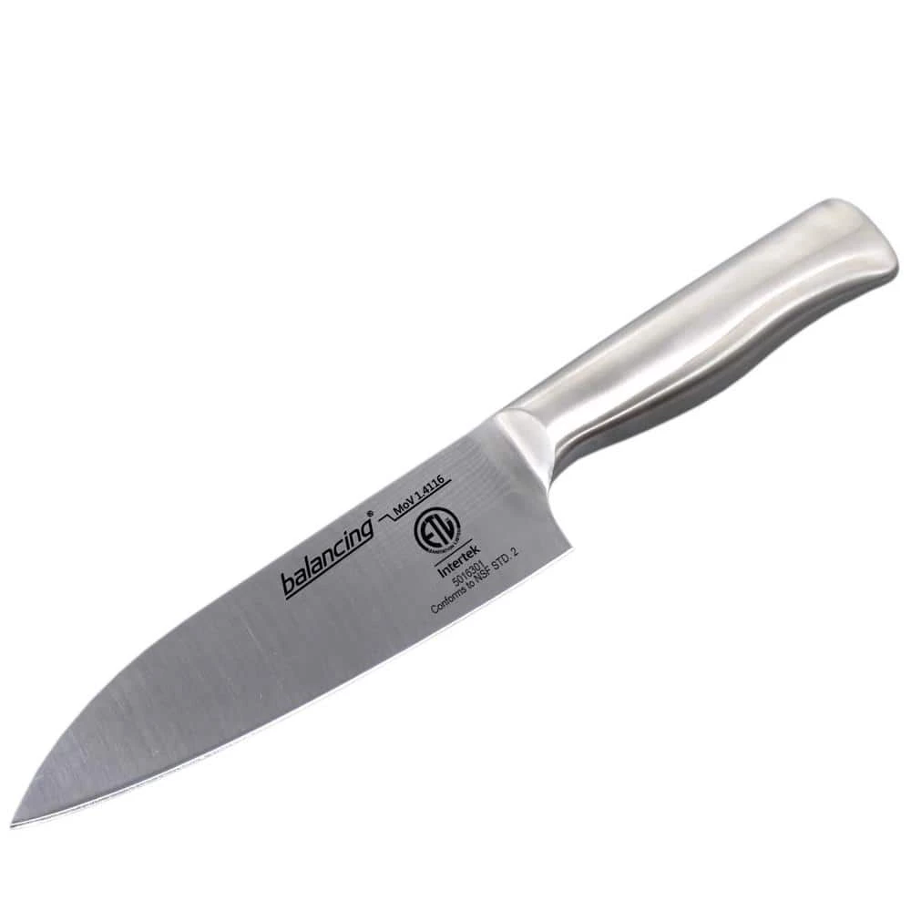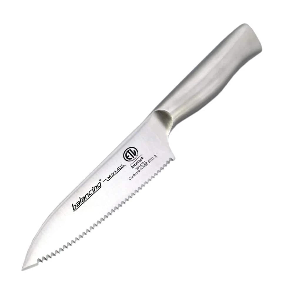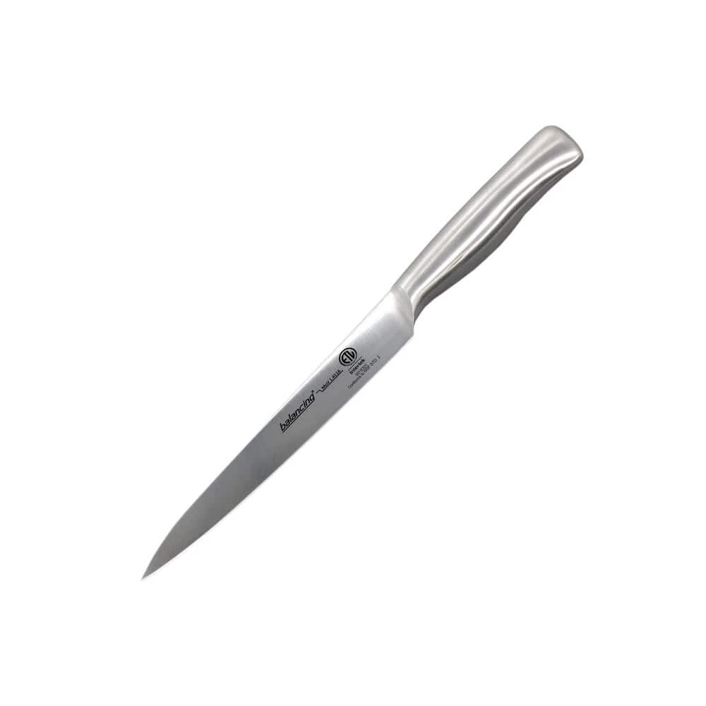 The Balancing 4116 Stainless Steel Handcrafted Knife Block Set features a set of premium high carbon German 1. 4116 steel blades which are precision forged to hold a razor-sharp edge. Each knife is constructed from a single-piece of metal, meaning it is more durable and balanced than almost any other knife on the market. These knives feature fully forged blades, bolsters and tangs for superior balance, strength and durability. Hand forged by expert bladesmiths, our premium German steel blades strike the perfect balance between sharpness and durability. Each blade is heat treated for stain, durability, corrosion resistance and long-lasting use.