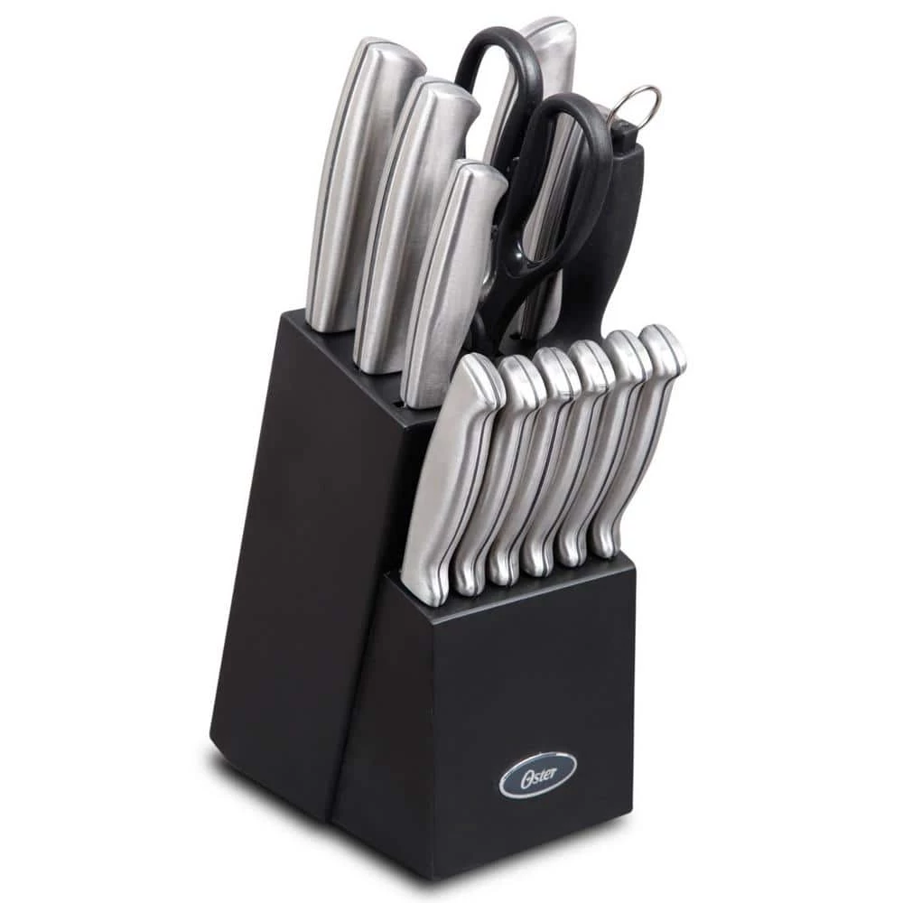 Complete your kitchen with these Baldwyn knives. They are precision-stamped for durability through the full length of the knife. This Oster cutlery also features high-quality, stain- and rust-resistant stainless steel blades.