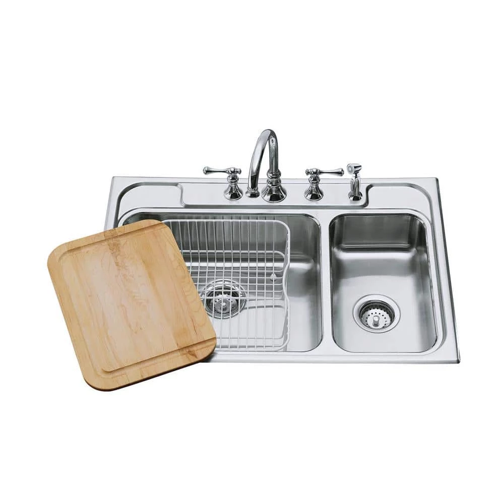 Made of beautiful, durable hardwood, this cutting board features a gracefully curved shape and grooved channel that directs liquids away from the edges and into the sink. The board has been specifically crafted to fit over select sinks, bringing convenience to your kitchen workspace. This product comes with a one year limited warranty.
