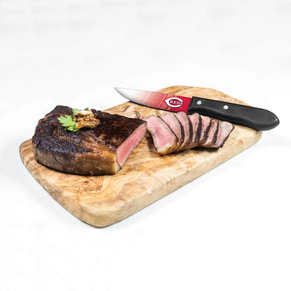 Looking for a new item to take your tailgate to the next level? Add this 4 piece stainless steel, steakhouse quality knife set to your collection of game day utensils and show your buddies that your fandom is undeniable. Includes 4 steakhouse quality steak knives sure to enrich your favorite cut of meat.