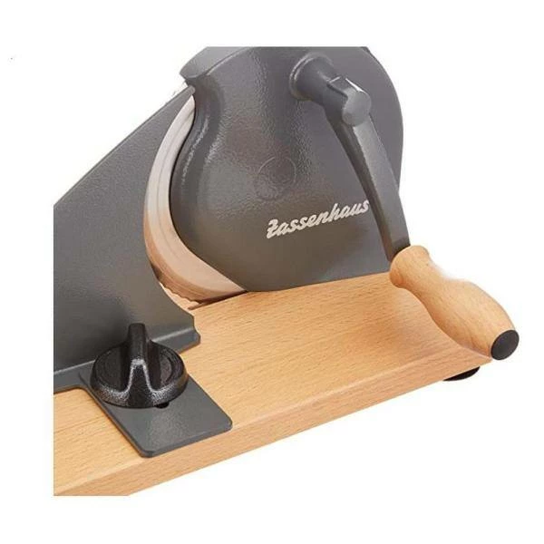 This classic manual bread slicer combines nostalgia with modern German design, making toast or a sandwich made with your own fresh bread, a whole lot easier. Infinitely adjustable up to 0.7 in. Blade made of stainless steel with a special serrated edge made in Solingen. Held securely in place thanks to 4-suction cups.