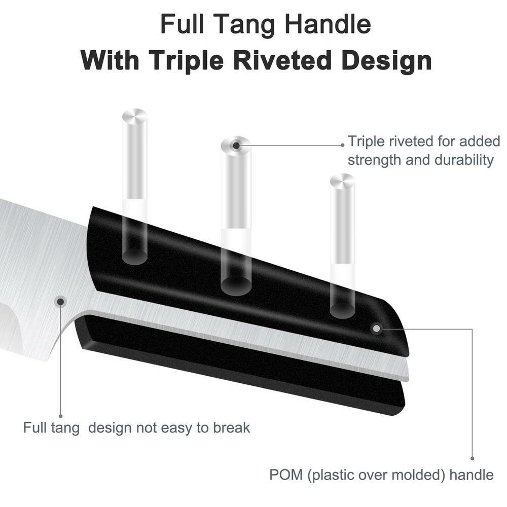 - Lightweight and ergonomically abs handle, it can provides comfort and confidence in handling, and also suitable for lefties triple riveted design makes knives set sturdy and durable
