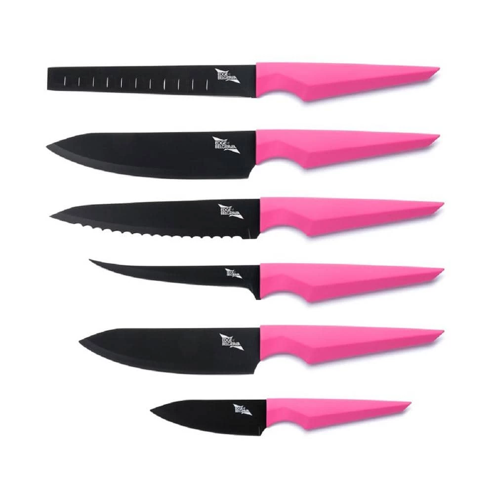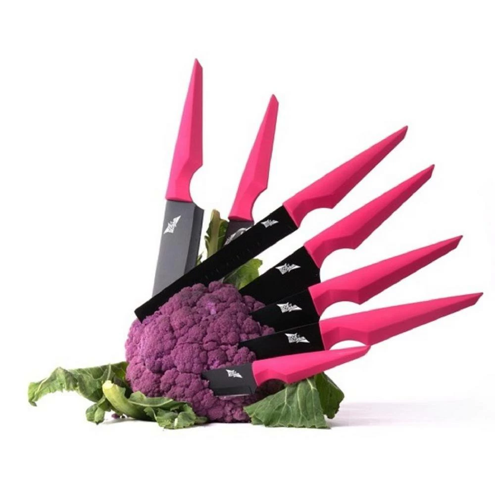 Precision Pink 6-piece Chef Knife Set benefits from the unique combination of a bold and futuristic design fused with the superb cutting ability of a stainless steel blade. It is a piece of art as much as an effective cooking tool. We believe this is the key to inspiring cooking. Precision is the unique creation of contemporary London designer Christian Bird. Christian is thrilled by perfection. His design fuses the perfection of the diamond-like facet shape handle with a unique and carefully thought out blade design. These chef knives were designed for precision in cooking. The complete six piece set is the ultimate collection for an aspiring Chef. We have carefully curated this set to the specific needs of London’s top Chefs. It will provide you with the tools you need to create the most sumptuous dishes. Each knife is uniquely designed for a specific purpose and task: master filleting fish, thinly slicing cured ham or mincing shallots to perfection. Your first Michelin star is in reach. Set includes: Paring Knife 4 in. : 10 cm Deba Knife 5 in. : 12.5 cm Bread Knife 7.5 in. : 19 cm Chef’s Knife 7.5 in. : 19 cm Filleting Knife 6 in. : 15 cm Slicing Knife 7.5 in. : 19 cm.