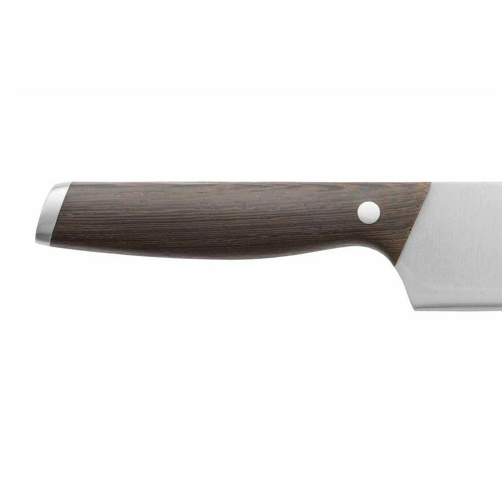 An efficient addition to any kitchen, this Santoku knife features a high-quality stainless steel blade that’s well-balanced with a contoured wooden handle for optimal control. This allows you to effortlessly slice, dice and mince a wide variety of ingredients while enjoying the warm touch of wood. Instantly gives your kitchen a touch of authenticity.