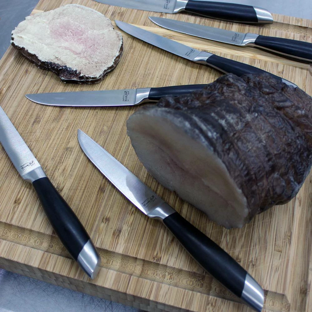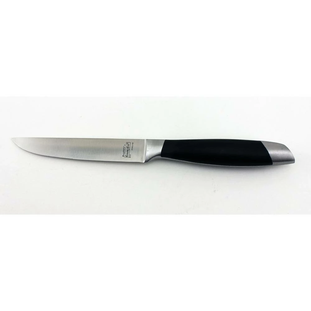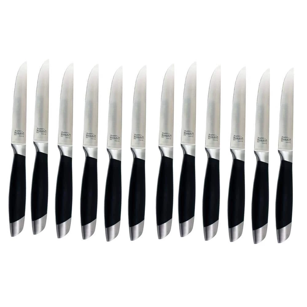 This Geminis 12-piece steak knife set is a must-have for mealtime. Durable stainless steel blades ensure precision and accuracy. Triple-riveted handles provide a secure, comfortable grip. 12 in. x 6 in. steak knives, stainless steel, hand wash only, limited lifetime warranty.