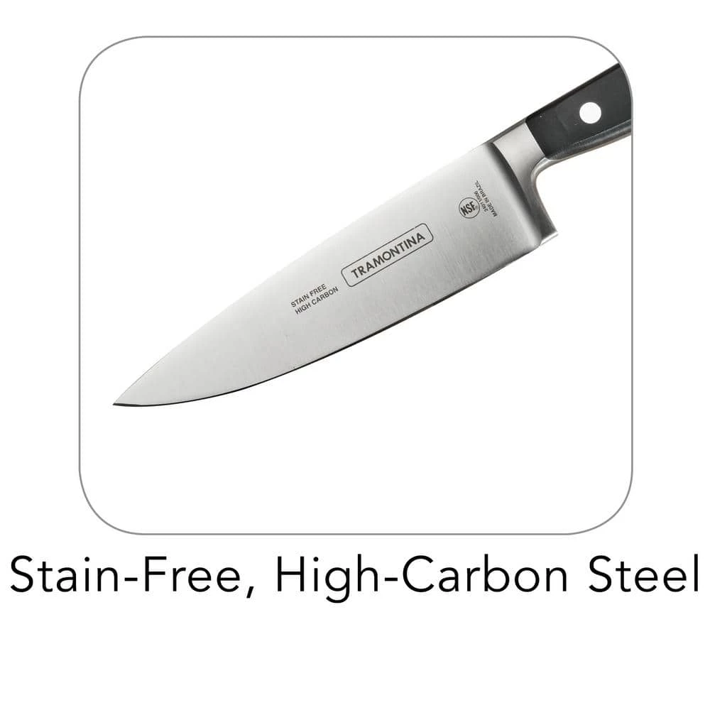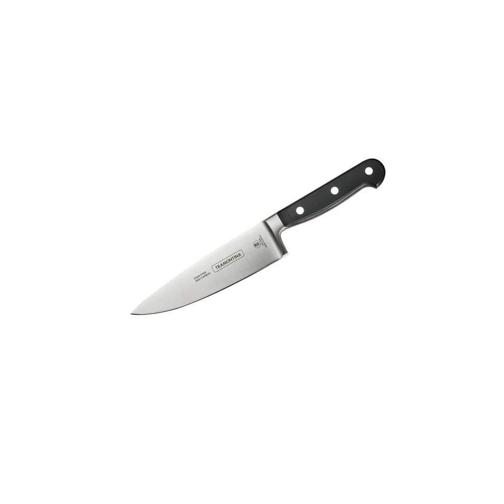 Tramontina’s Gourmet Professional Series 6 in. Cooks Knife is forged from a single solid piece of premium high-carbon stainless steel for unrivaled strength and durability. Blade is taper ground and precision-honed to a fine edge, while the heft of the full tang, combined with the bolster provide weight and rigidity for safety and superb balance. The design of the handle maintains the traditional style preferred by executive chefs with an ergonomic emphasis on perfect balance and a firm, comfortable grip. The Cooks Knife is part of Tramontina GOURMET, a collection of premium products engineered and manufactured with the finest design, materials and workmanship, outperforming similar products within the market and delivering the best quality and value to the cooking professional and enthusiast alike.