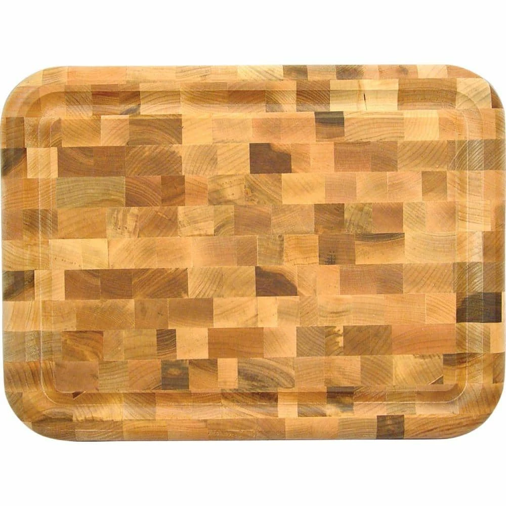 The Reversible End-Grain Block is durably constructed from wood and given a handsome oiled finish. 1 side has a practical juice groove, while the other is plain. Made from solid hardwood.