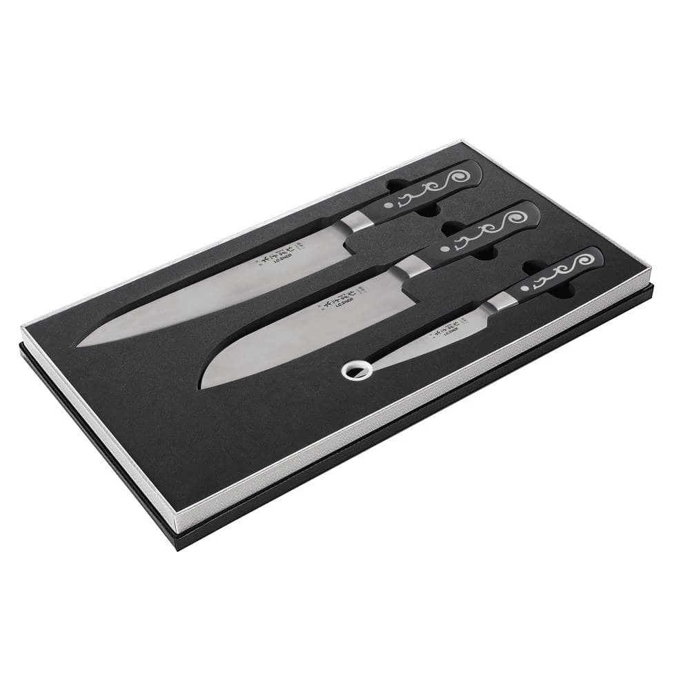 - Stunning new addition to the I.O.shen range, 1. chef knife a 8 in. /210mm, 2. sahm khom /santoku a 6 ΒΌ in. /160mm knife, 3. pointed paring knife a 4 ΒΌ in. /105 mm