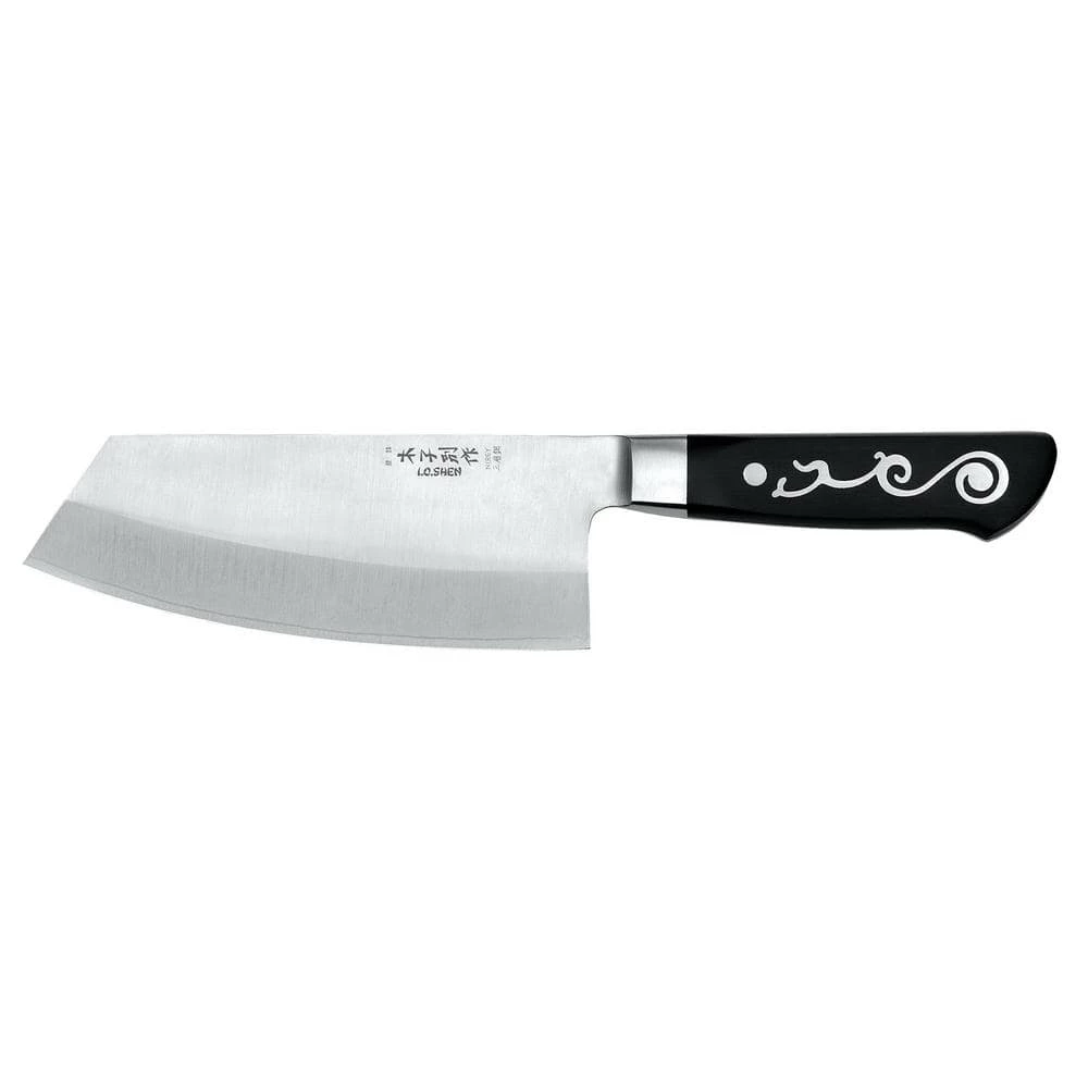 This knife rocks. Fabulous for Asian greensWide Blade Knife designed to slice herbs, vegetables, meat easily. The curve on the blade creates rocking affects so that less pressure on your wrist and get a clean cut in no time. The wider blade not only to guide and protect your finger but also use it to transfer food from chopping board to the wok. This knife is not designed to cut bone, it will perform well for slicing, dicing, and mincing I.O. Shen has overcome the brittleness of hard steel, using a layer of super hard steel (Rockwell 62), sandwiched between two layers of softer stainless steel (Rockwell 10) to produce the ultimate cutting edge. We call this Triplex Steel Technology. I.O.Shen Mastergrade built all knives using the latest technology so that it is not only amazingly sharp but will retain the edge sharpness for a phenomenal amount of time. Handcrafted by our Master attained to 15 angle edge, slicing becomes easy and fun. Each I.O.Shen knife has carefully handcrafted and took in average 7 hours hand finished. Designing unique handle with Yin Yang philosophy distinguishes I.O.Shen from any other knife, improving balance and handle stability, and beautiful work of art handle.The Tai Tang handle is not just an embellishment but it is actually an integral part of the handle frame (the Tang).The handles made with ebonite which is durable and heat resistant. (no dishwasher cleaning please)