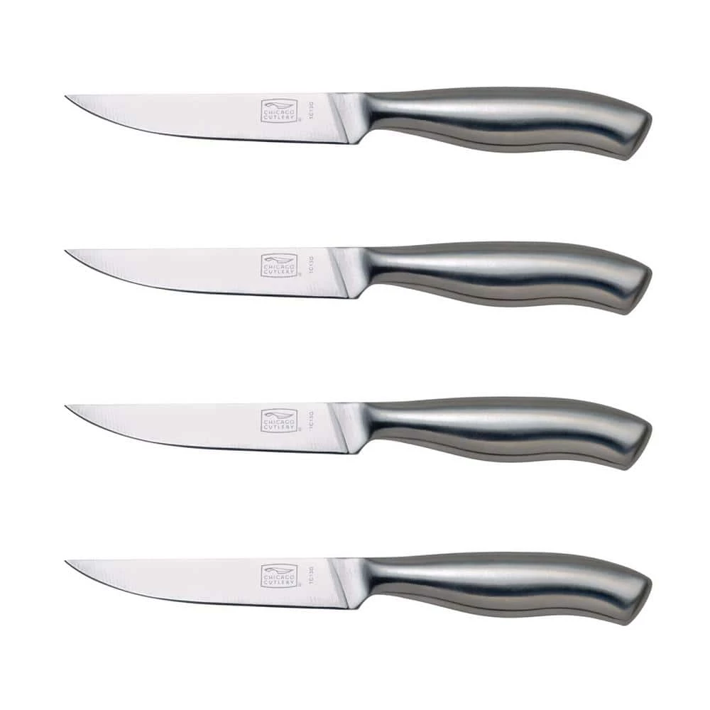Comfortably contoured stainless-steel handles hold the high-carbon stainless-steel blades. Full metal tangs add strength and balance. Our steak-knife set is purpose-built for cutting meat quickly and easily.