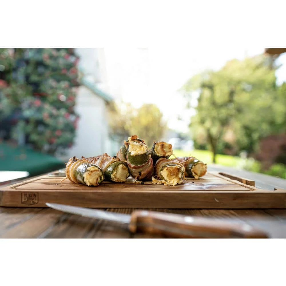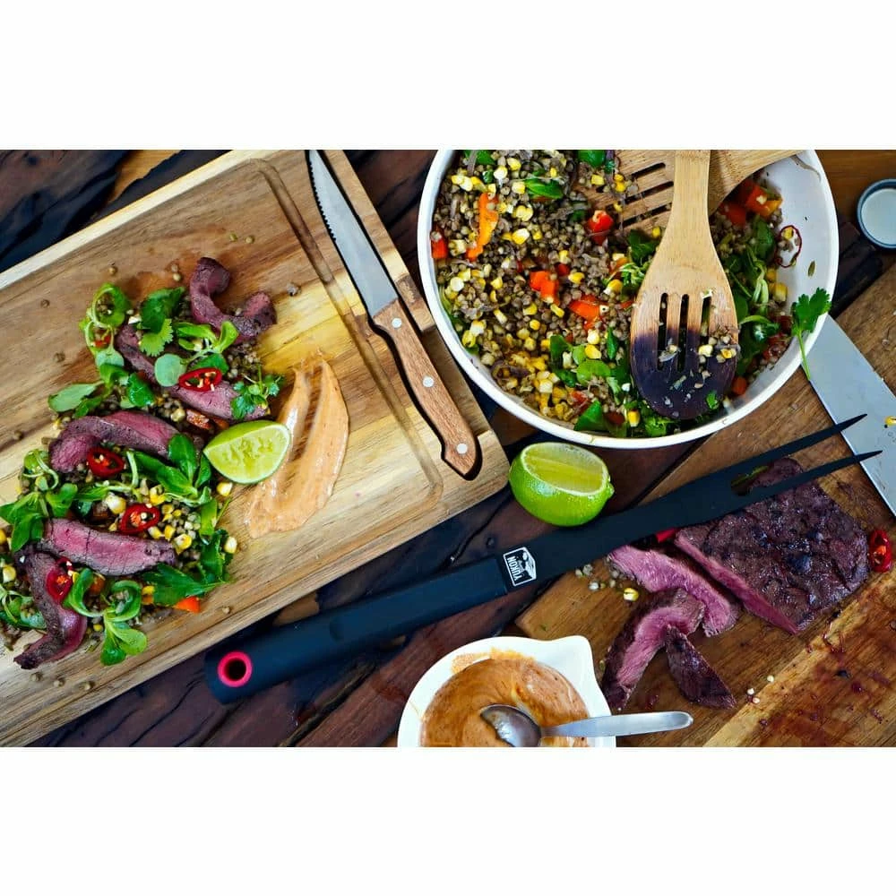 - Innovative design designed with care and functionality special grooves for sauce cups and steak knives that are included as well as grooves to catch the juices