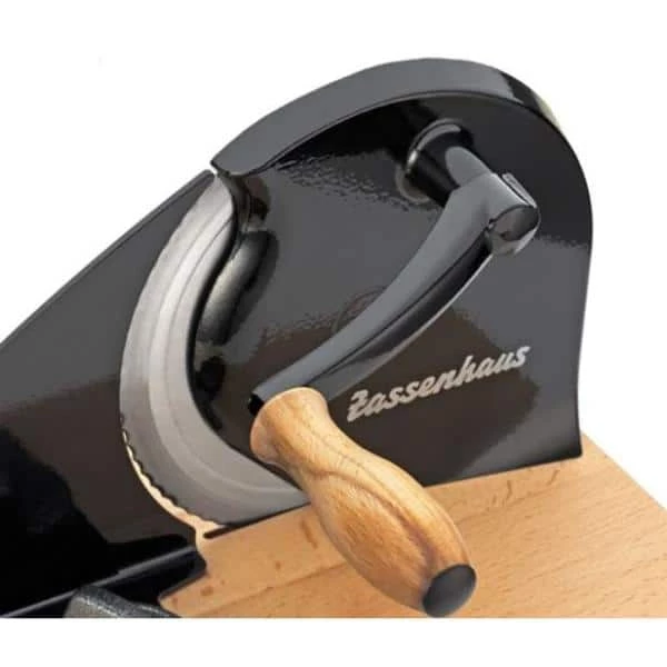 This classic manual bread slicer combines nostalgia with modern German design, making toast or a sandwich made with your own fresh bread, a whole lot easier. Infinitely adjustable up to 0.7 in. Blade made of stainless steel with a special serrated edge made in Solingen. Held securely in place thanks to 4-suction cups.
