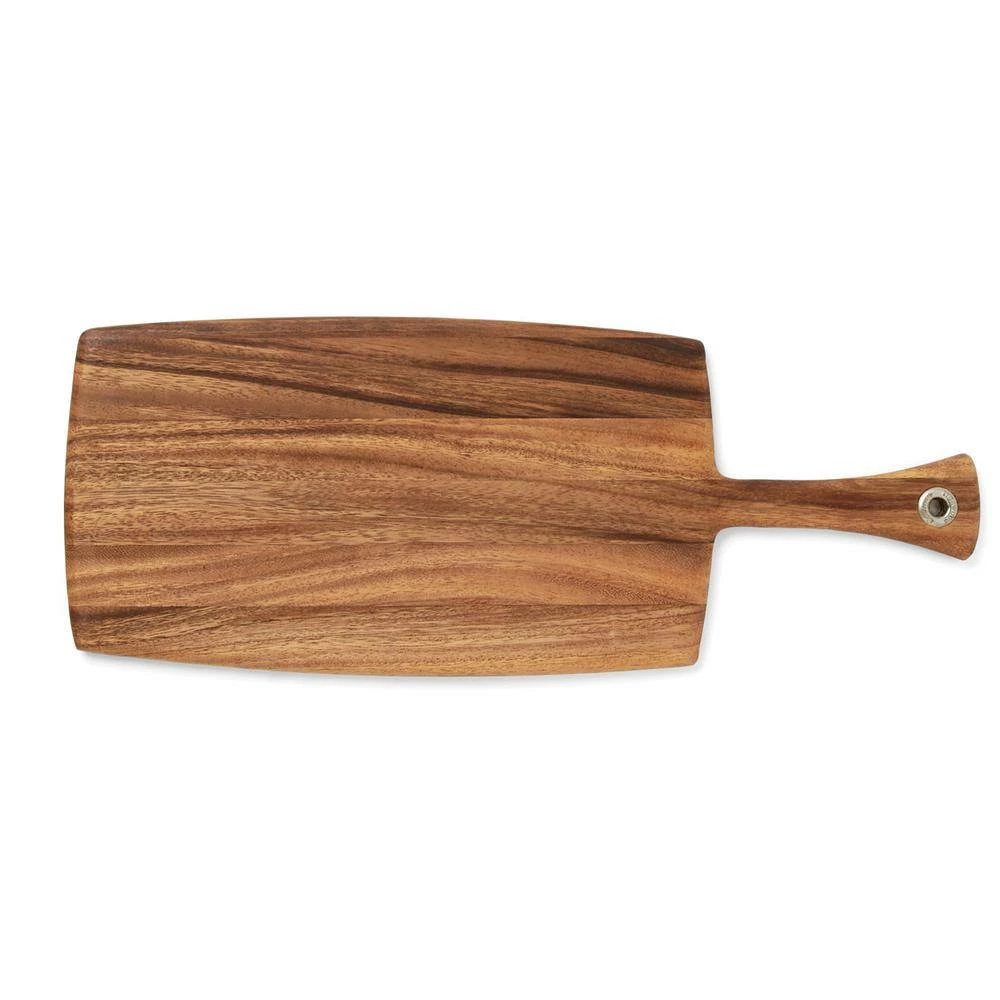 This Small Rectangular Provencale Paddle Board is functional and beautiful due to its rich, shimmering colors. The featured grommet allows you to easily hang the board on display when not in use or for air drying. These handcrafted acacia wood paddle boards are the perfect centerpiece board to hold your cheeses, cured meats, olives, dried fruits, nuts and crackers. Also great for smaller pizzas, flatbreads, burgers and sandwiches. After washing and drying, rejuvenate and protect the wood by rubbing it down with Ironwood Butcher Block Oil. Apply the oil liberally and allow it to soak in thoroughly before use. Regular application of our Butcher Block Oil will prevent cracking and preserve the rich natural colors of the wood.