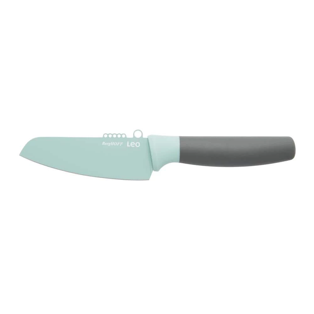 Vegetable knife with zester mint, Cabbage, salad, eggplants, you name it, the Leo vegetable knife will help you to slice, dice, chop or trim it. The mint coloured blade with non-stick coating glides right through all kinds of vegetables while the integrated zester allows you to add a fruity touch to your dishes as it zests limes, lemons and other citrus fruits with minimum effort. The knife comes with a protective sleeve for safe storage.