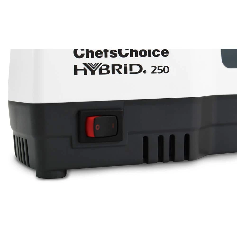 Combining electric and manual stages, this hybrid sharpener is the ideal solution for improved cutting performance on 20-degree class knives. Using 100 percent diamonds, the hardest natural substance on earth, our patented abrasives sharpen faster and easier to create an ultra-sharp, longer lasting edge. The final stage delivers a polished finish. Precision angle control ensures accurate sharpening throughout the entire blade length. This unit is designed to work with both straight-edge and serrated knives. WHY YOU NEED A KNIFE SHARPENER – Over time, a knife’s edge dulls under the stress of cutting. The overall performance can be significantly improved if sharpened and maintained correctly. HOW DO KNIFE SHARPENERS WORK – Good sharpening systems shape the knife edge with a coarse abrasive and polish with a finer abrasive.
