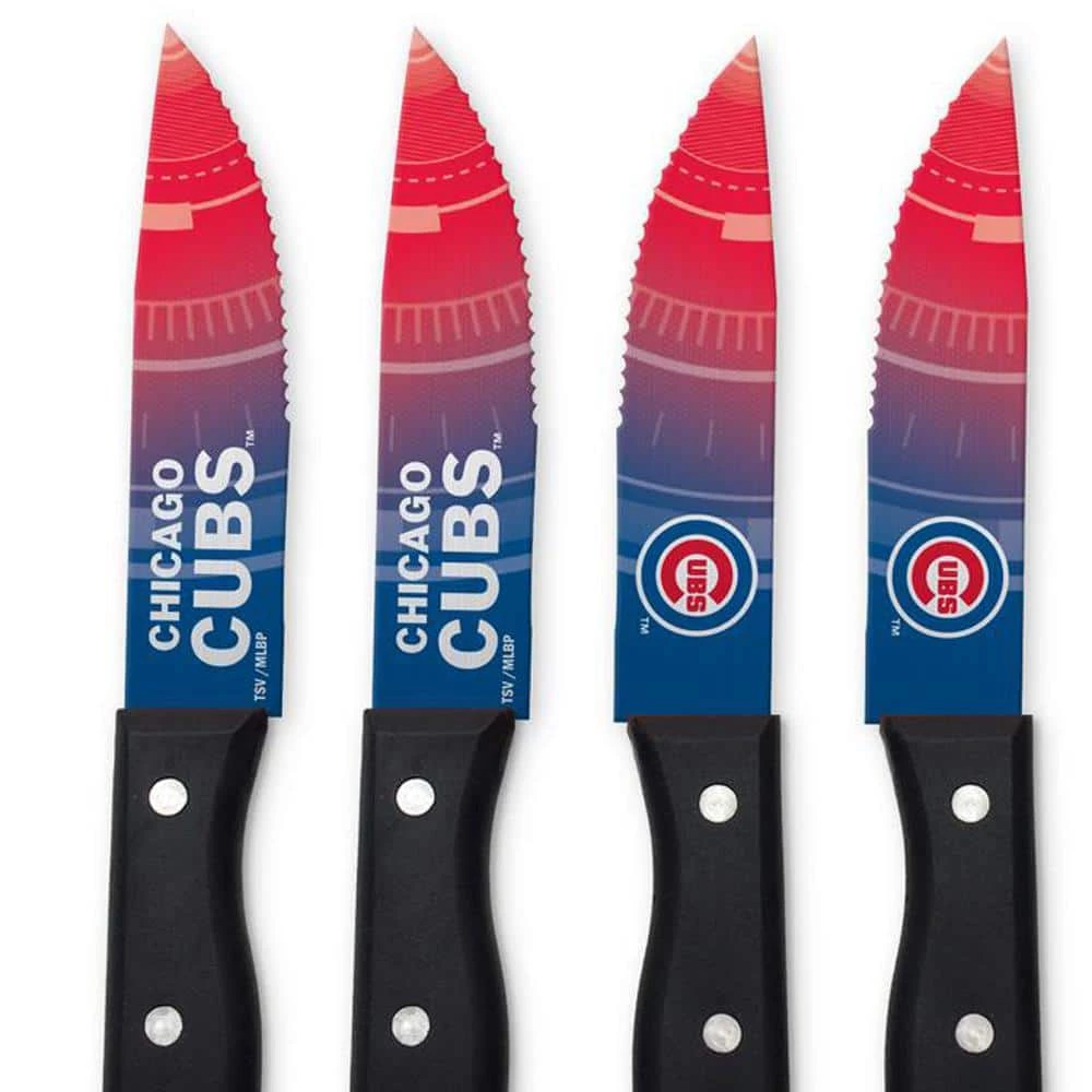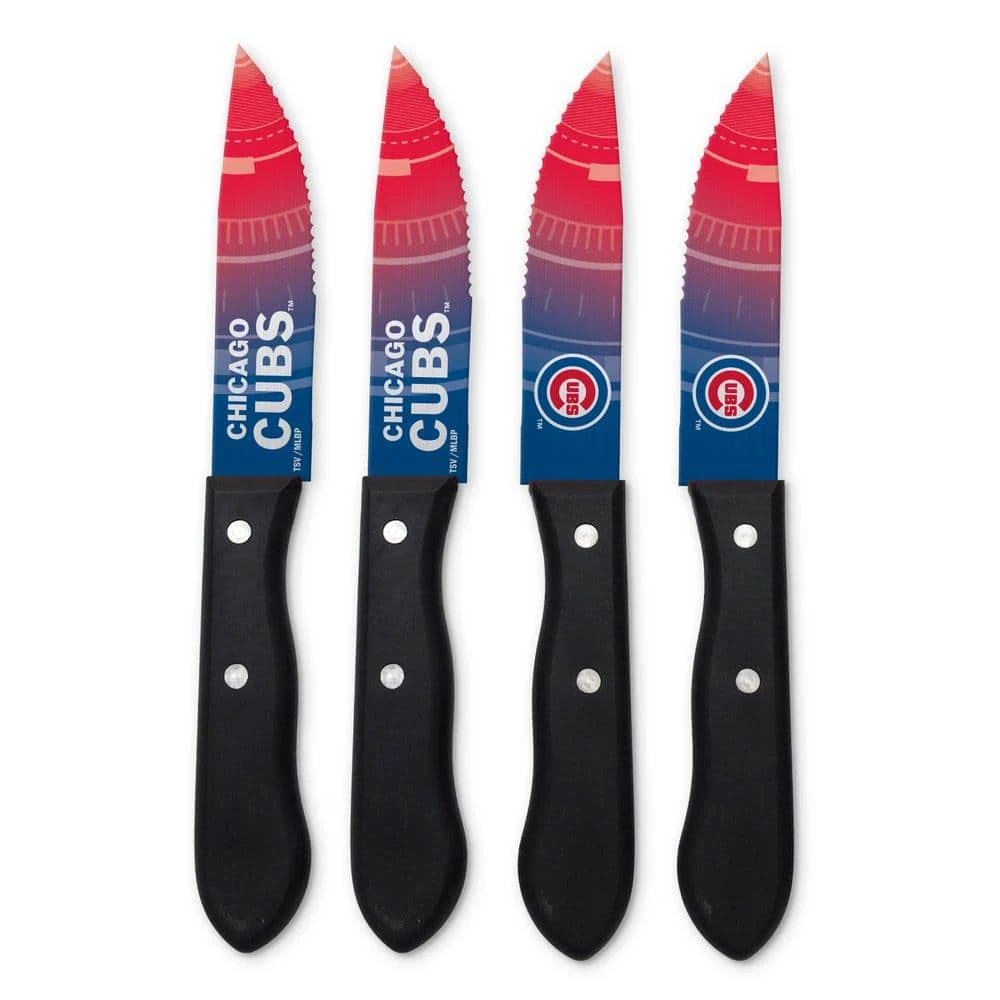 Looking for a new item to take your tailgate to the next level, Add this 4-piece stainless steel, steakhouse quality knife set to your collection of game day utensils. And show your buddies that your fandom is undeniable. Includes 4 steakhouse quality steak knives sure to enrich your favorite cut of meat.