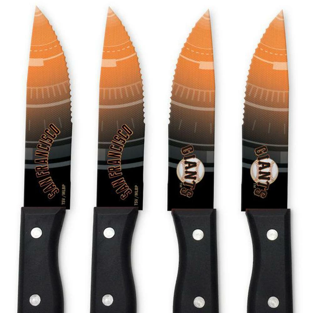 Looking for a new item to take your tailgate to the next level, Add this 4-piece stainless steel, steakhouse quality knife set to your collection of game day utensils. And show your buddies that your fandom is undeniable. Includes 4 steakhouse quality steak knives sure to enrich your favorite cut of meat.