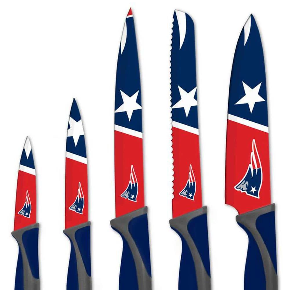 This 5-piece stainless steel cutlery knife set is the perfect addition to your game day home and tailgate collection. This uniquely crafted set includes knives that each feature authentic team graphics and durable plastic handles that any food connoisseur would love. Each knife is ready for the daily grind of making your life easier in the kitchen, at the tailgate or for the big game parties.