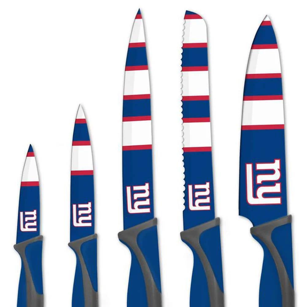 This 5-piece stainless steel cutlery knife set is the perfect addition to your game day home and tailgate collection. This uniquely crafted set includes knives that each feature authentic team graphics and durable plastic handles that any food connoisseur would love. Each knife is ready for the daily grind of making your life easier in the kitchen, at the tailgate or for the big game parties.