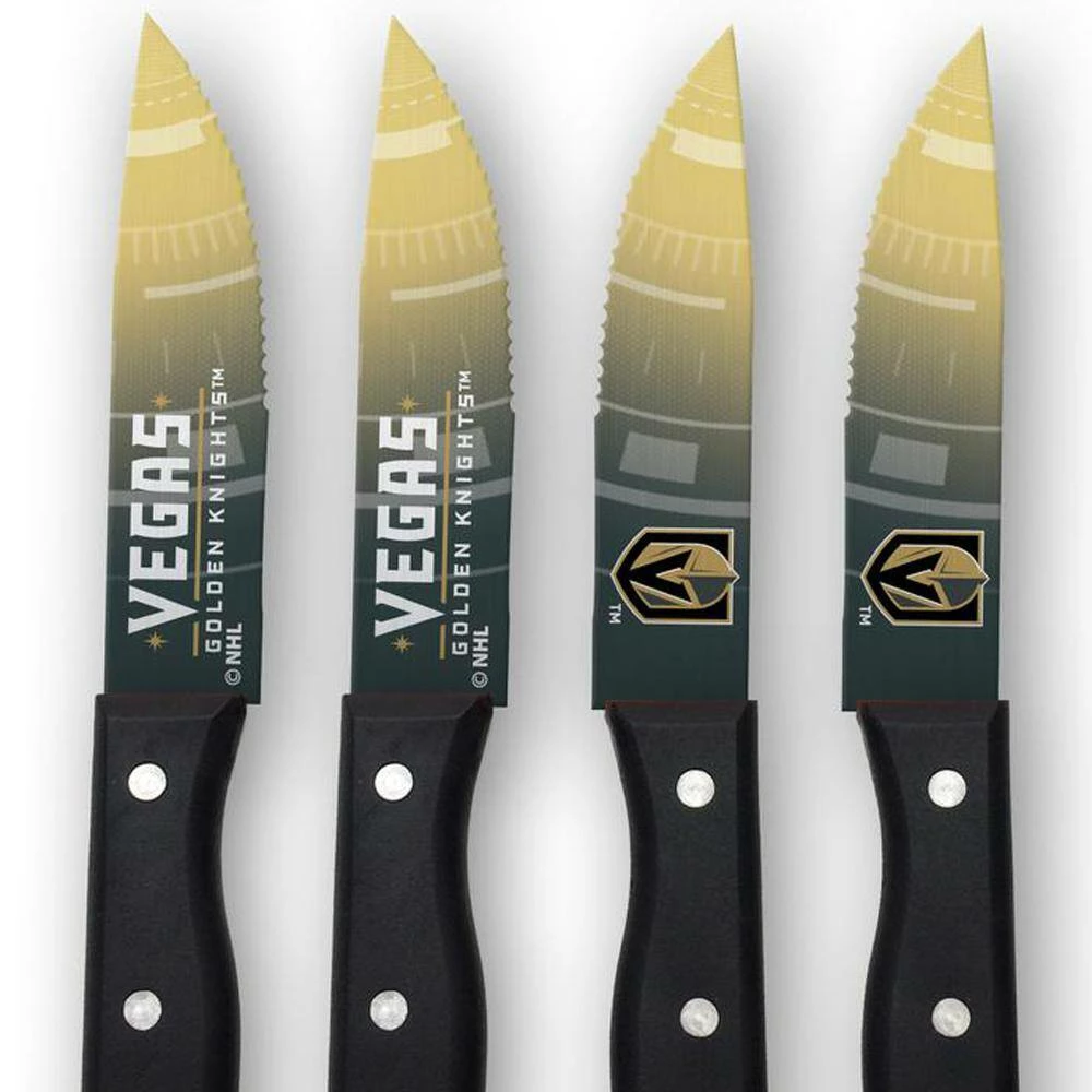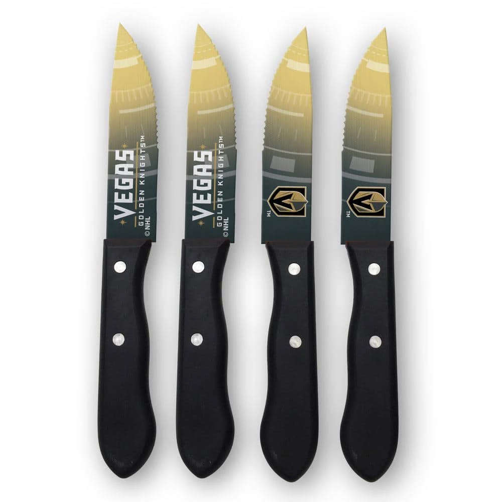 Looking for a new item to take your tailgate to the next level, Add this 4-piece stainless steel, steakhouse quality knife set to your collection of game day utensils. And show your buddies that your fandom is undeniable. Includes 4 steakhouse quality steak knives sure to enrich your favorite cut of meat.
