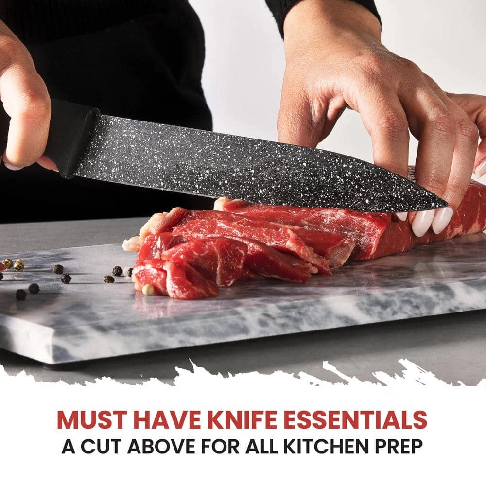 - Slicer: perfect to cut slices of cooked or smoked meat, poultry or fish, the granite coating will make the slicer one of your go-to knives in your kitchen, since its non-stick surface will give you precise control over every cut