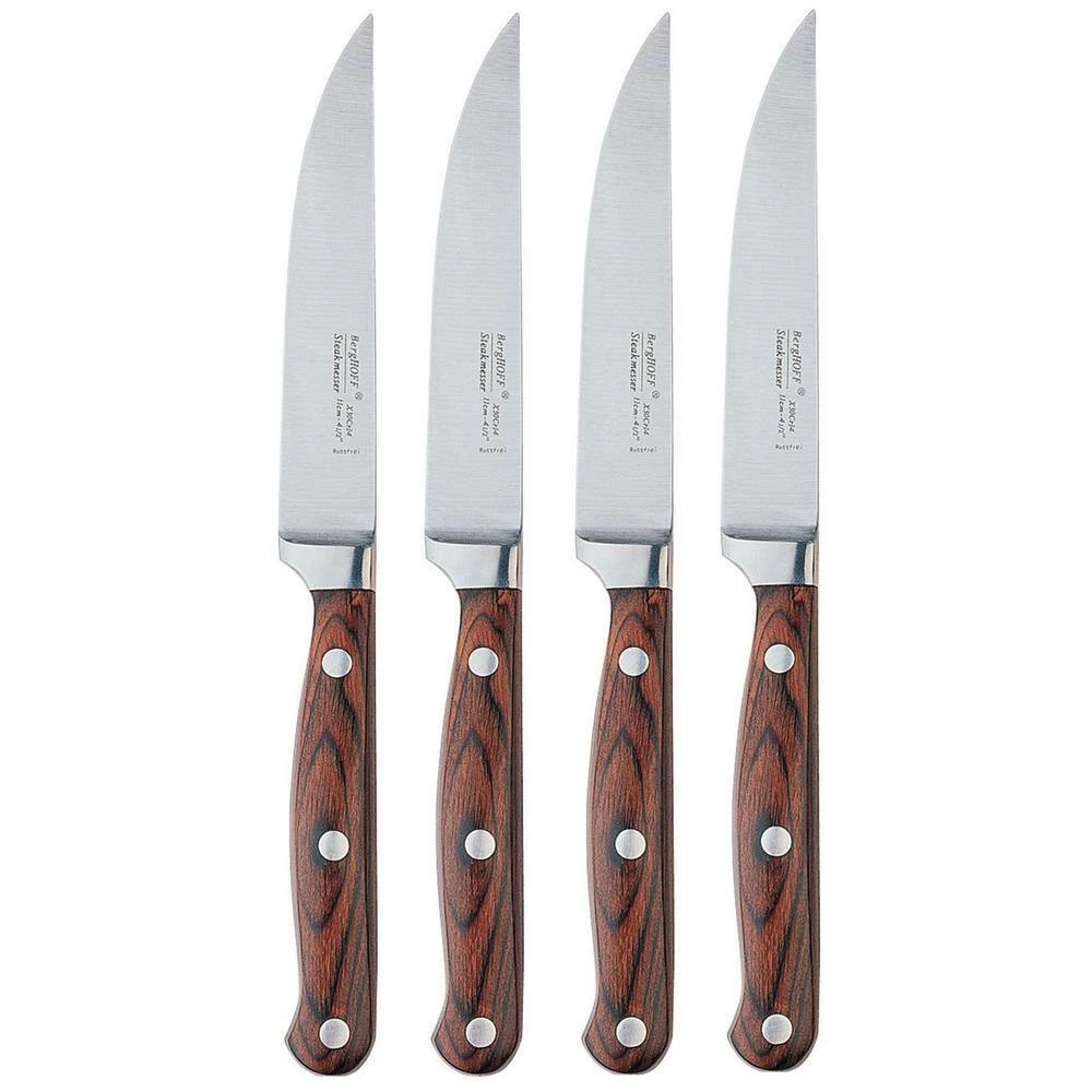 Set includes 12-stainless steel steak knives with beautiful pakka wood handles. A classic look to bring style to any current kitchen decor. Hand wash recommended.