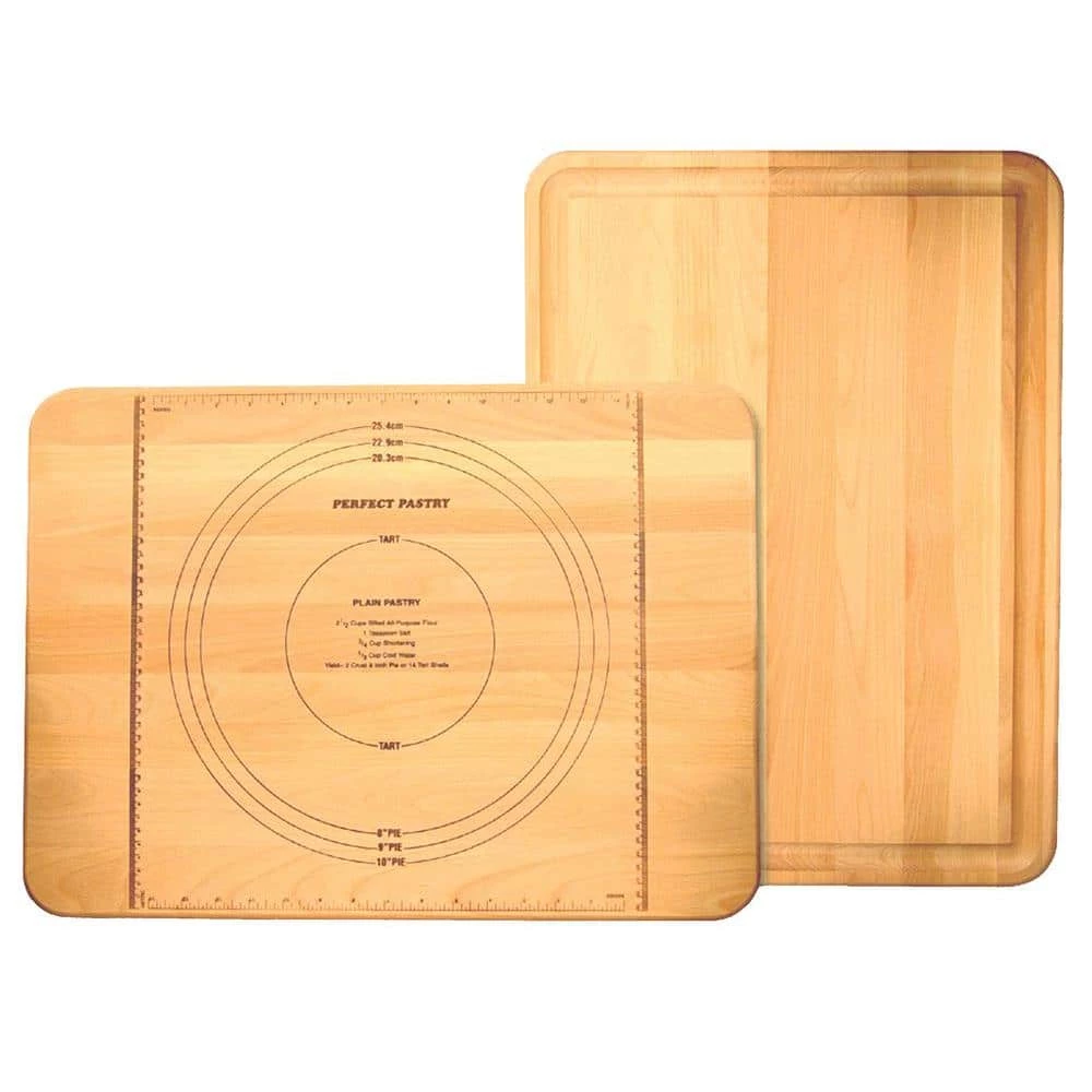The Perfect Pastry Cutting Board is durably made from wood and features a juice groove and rounded edges. It has a flat grain and measures 22 x 16 for ample workspace.