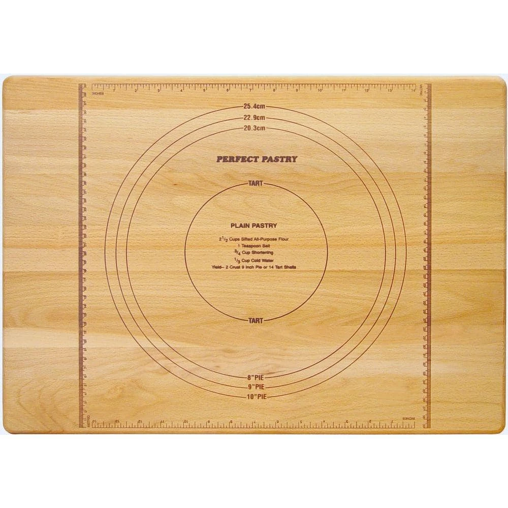The Reversible Perfect Pastry Board is durably made from wood and features a flat grain and attractive oiled finish. The helpful Perfect Pastry brand appears on the obverse. Made from solid hardwood.