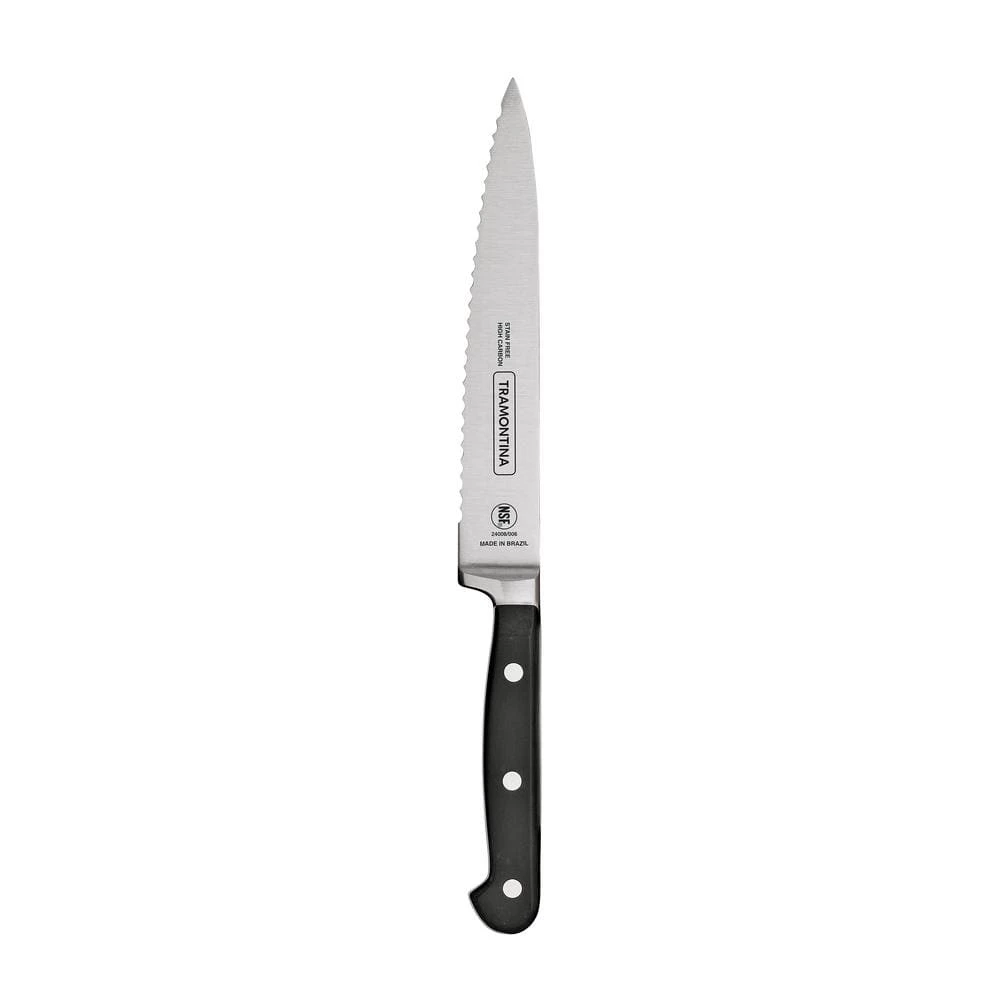 Tramontina’s Gourmet Professional Series Knife Sets are forged from a single solid piece of premium high-carbon stainless steel for unrivaled strength and durability. Blades are fully tapered and fully beveled and hand-honed to a fine edge, while the heft of the full tang, combined with the bolster provide weight and rigidity for safety and superb balance. The design of the handle maintains the traditional style preferred by executive chefs with an ergonomic emphasis on perfect balance and a firm, comfortable grip. This knife set is part of TRAMONTINA GOURMET collection, which features timeless products crafted especially for the cooking enthusiast.