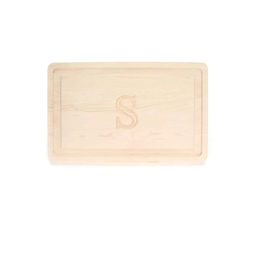 The BigWood Boards Personalized Carving Board is a solid Maple wood cutting board in a classic design. The beautiful carved monogram adds an element of personalization and makes this a special monogrammed wedding gift or monogrammed gift for another occasion. Our large monogrammed board is 15 in. x 24 in. and an impressive 1-1/4 in. thickness making it built to last and the perfect size for presenting an entre or main course of a meal.