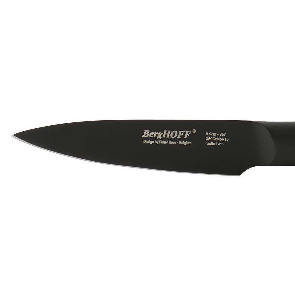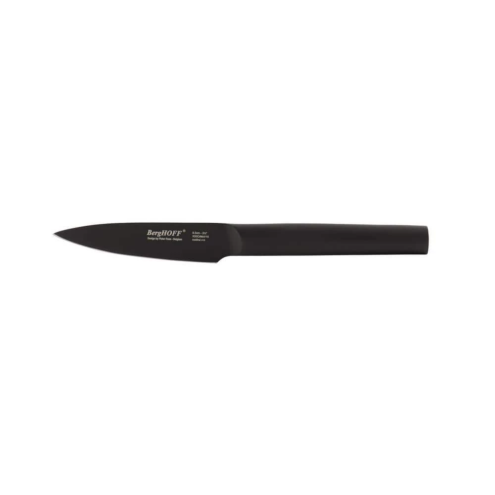 This Ron 3.25 in. paring knife is a must-have piece of cutlery for almost any task. Featuring a stylishly black, razor-sharp blade, this knife will prove invaluable for slicing, dicing, carving or whatever job you need it for. Crafted from chrome/molybdenum/vanadium steel with a titanium non-stick coating for unprecedented strength and reliability. Wash with soap and water.