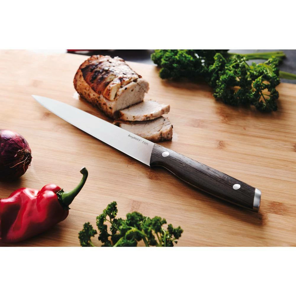 Slicing through meat, fish or poultry without tearing the flesh is child’s play when you’ve got the right knife in your hands. With this razor-sharp carving knife you have exactly what you need since the long narrow blade easily slices and cleans various types of food and the stylish wooden handle offers a safe and comfortable grip. So when that big roast makes it’s way to the table, this stylish carving knife is the perfect partner to make those thin and perfectly even slices.