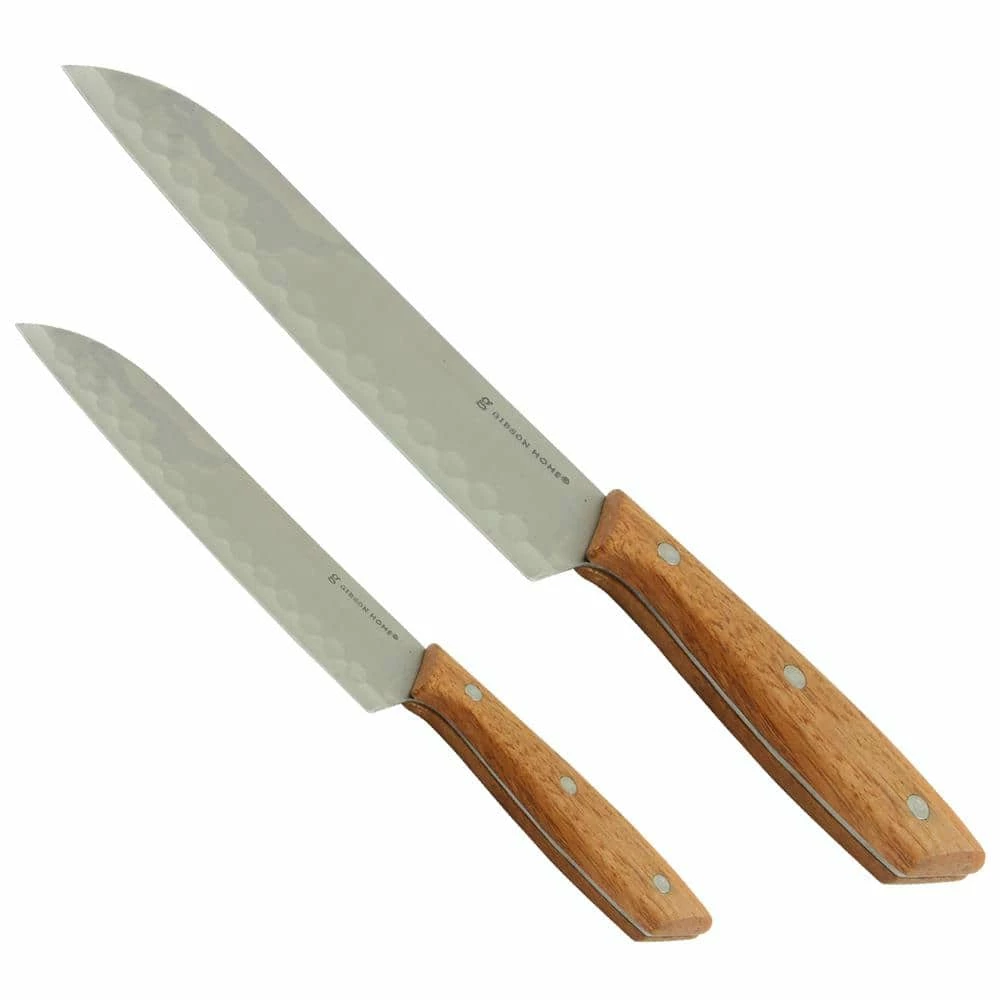 The Gibson Home Seward 2-Piece Knife Set includes the basic knives needed for a great meal. Each knife in this set is made from durable high quality stainless steel to ensure a stain and rust resistant sharp cutting blades. These full tang knives feature a triple riveted handle for a sturdy comfortable grip.